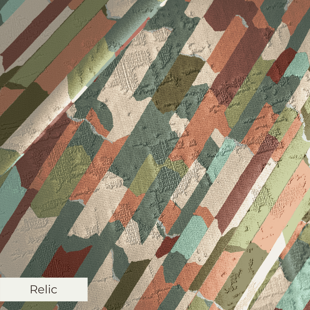 A luxurious jacquard upholstery fabric with an abstract distressed pattern in soft, elegant tones and subtle sheen. Relic brings timeless sophistication and versatile styling across traditional and contemporary interiors.