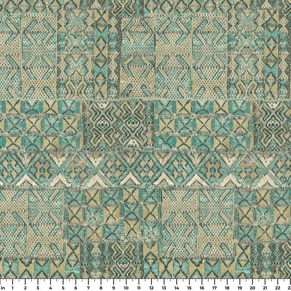 This traditional patchwork textile features weathered geometric patterns, creating a vintage mosaic effect with distressed tribal motifs.