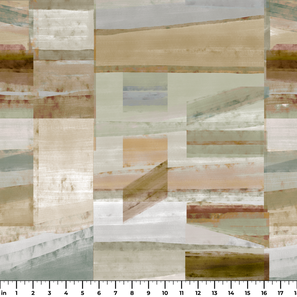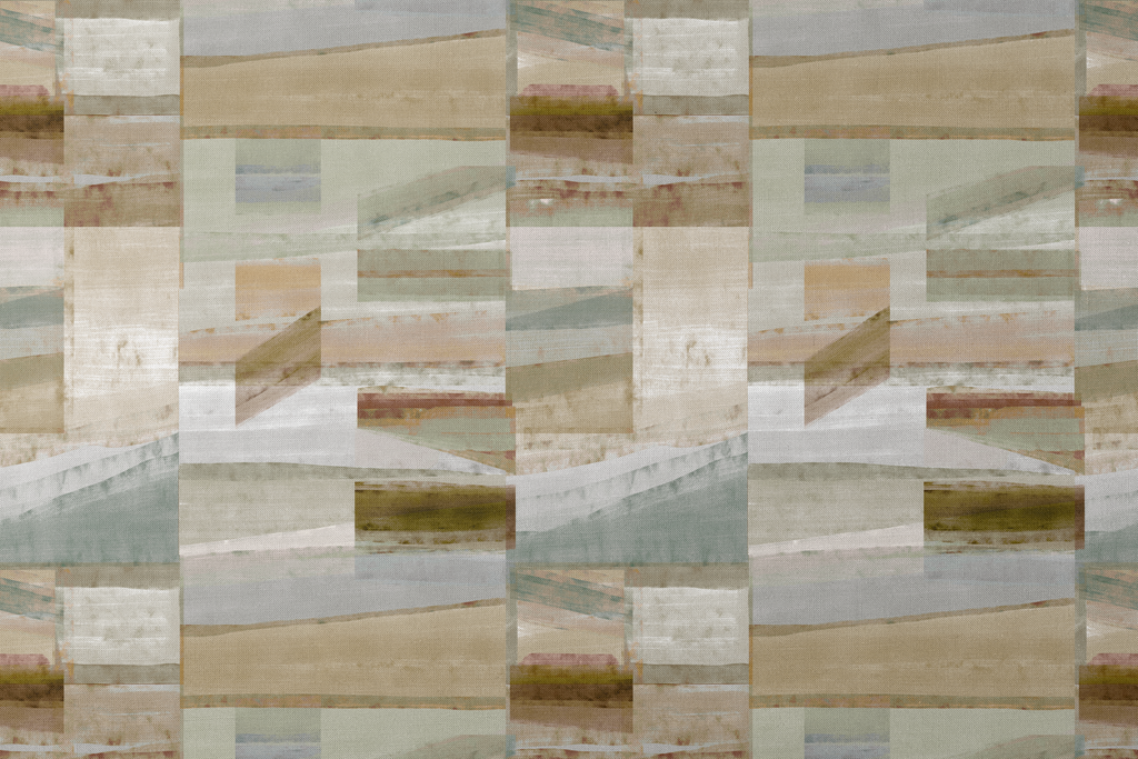 Abstract contemporary pattern in soft neutral tones featuring a geometric patchwork of beige, cream, and gray rectangular shapes, creating a tranquil modern collage perfect for sophisticated home decor.