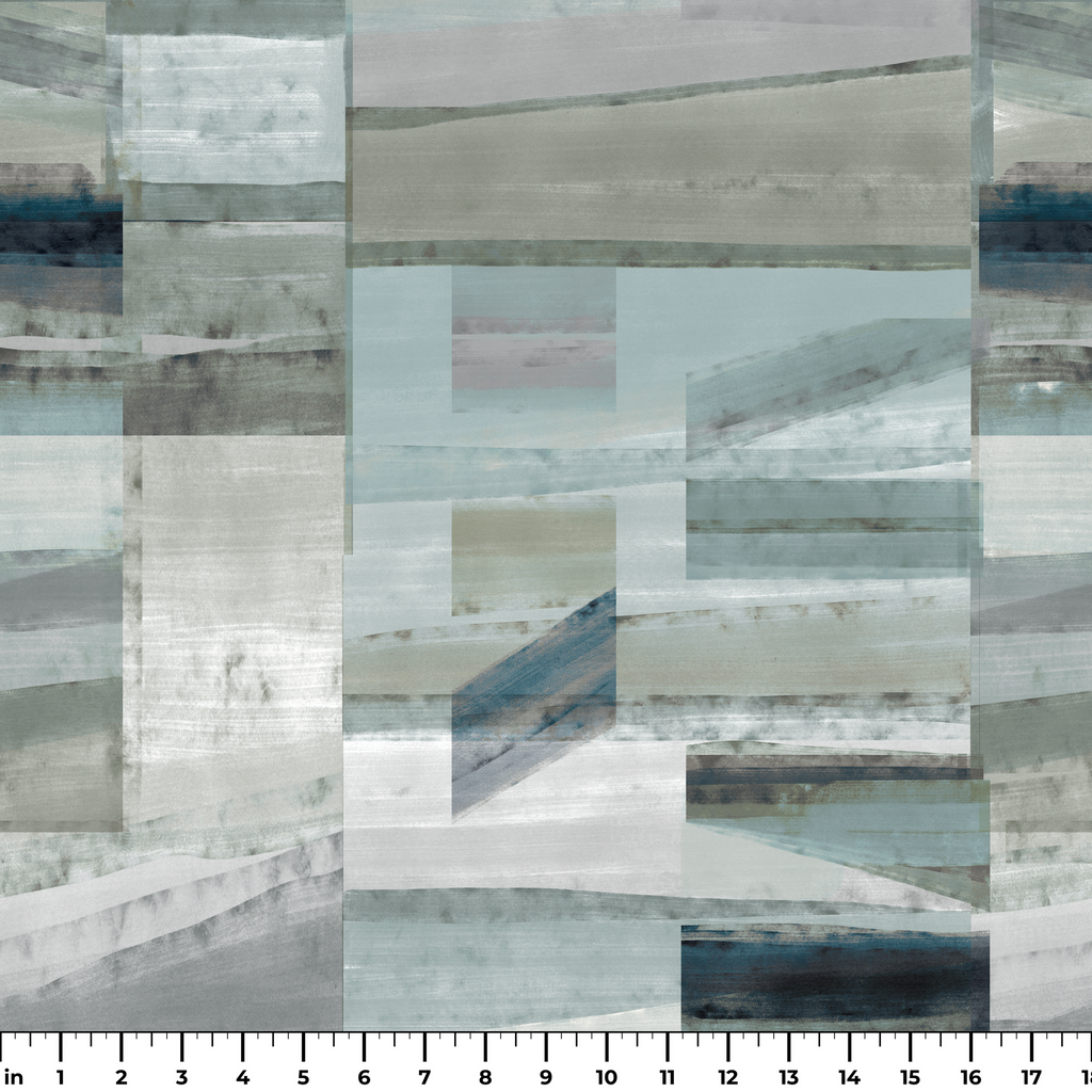 Contemporary abstract print in serene blue-green tones with geometric block patterns, creating a calm coastal-inspired aesthetic perfect for modern minimalist home decor.