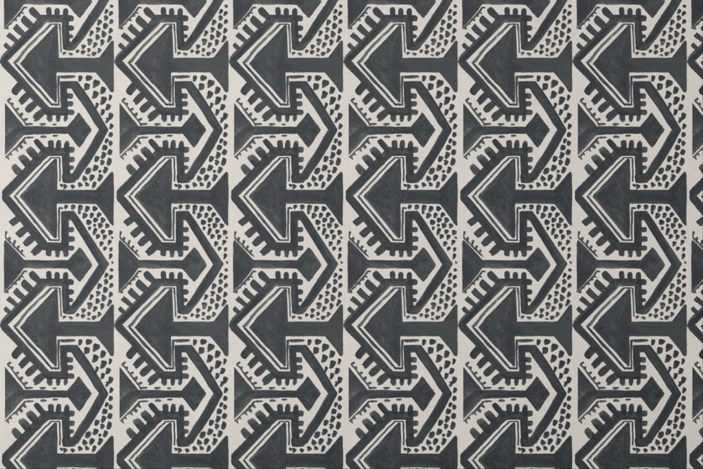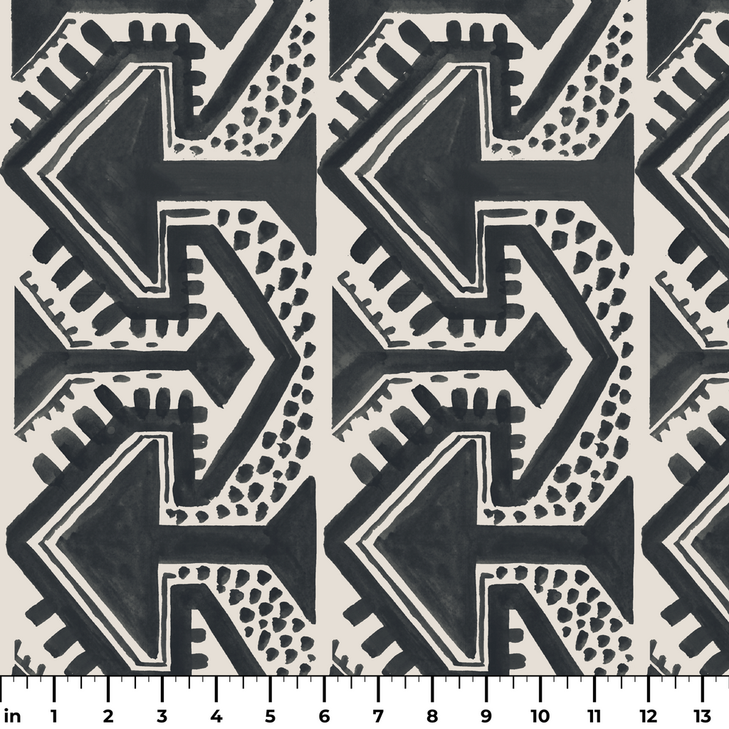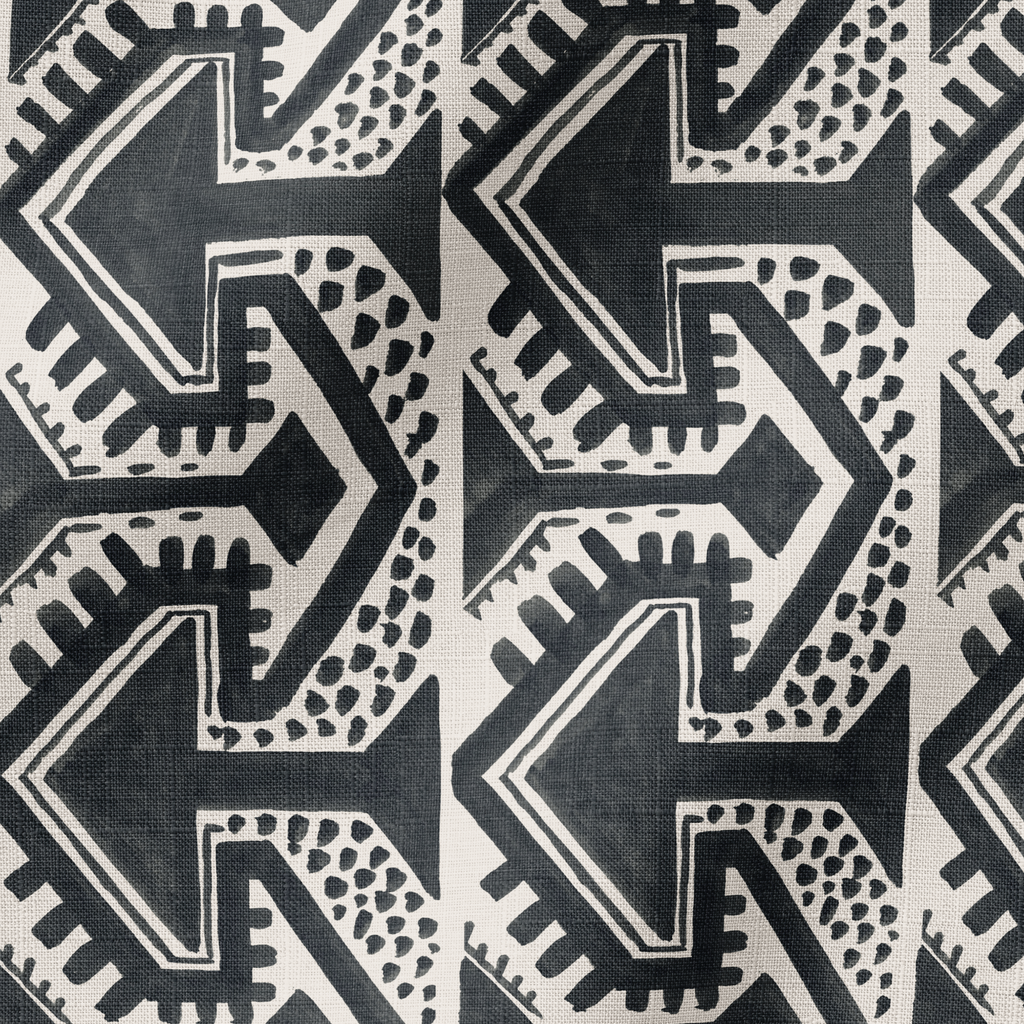 Stylish geometric arrow pattern features a repeating tribal-inspired motif, perfect for decor with a contemporary bohemian aesthetic.