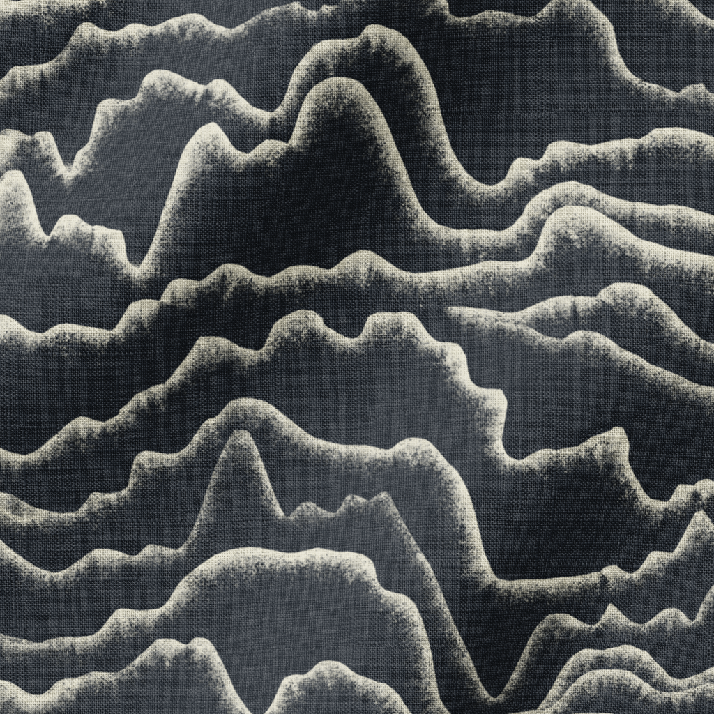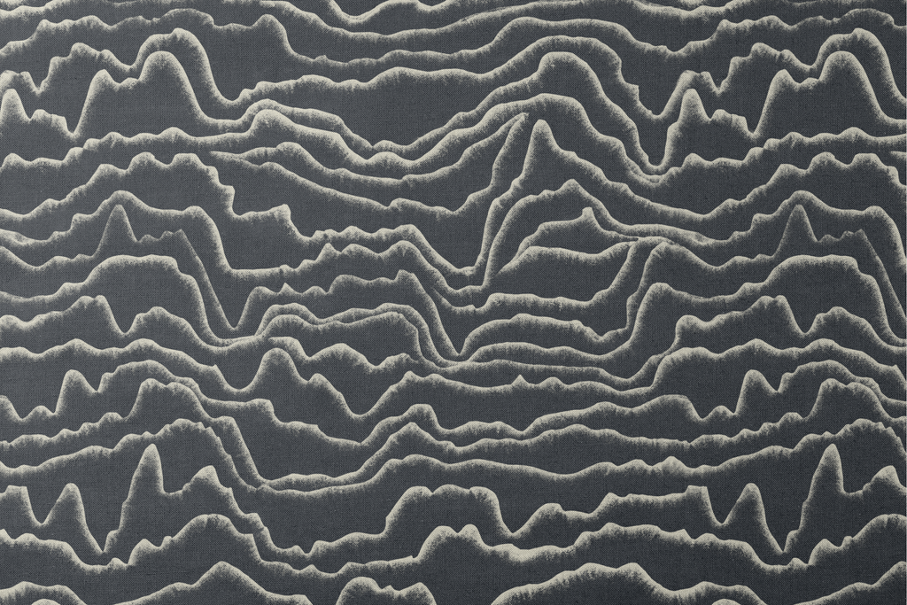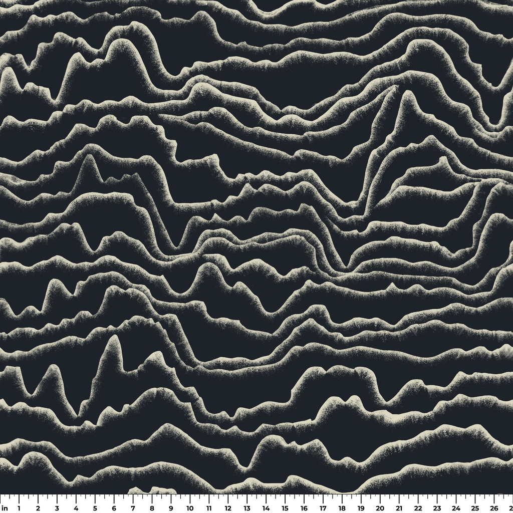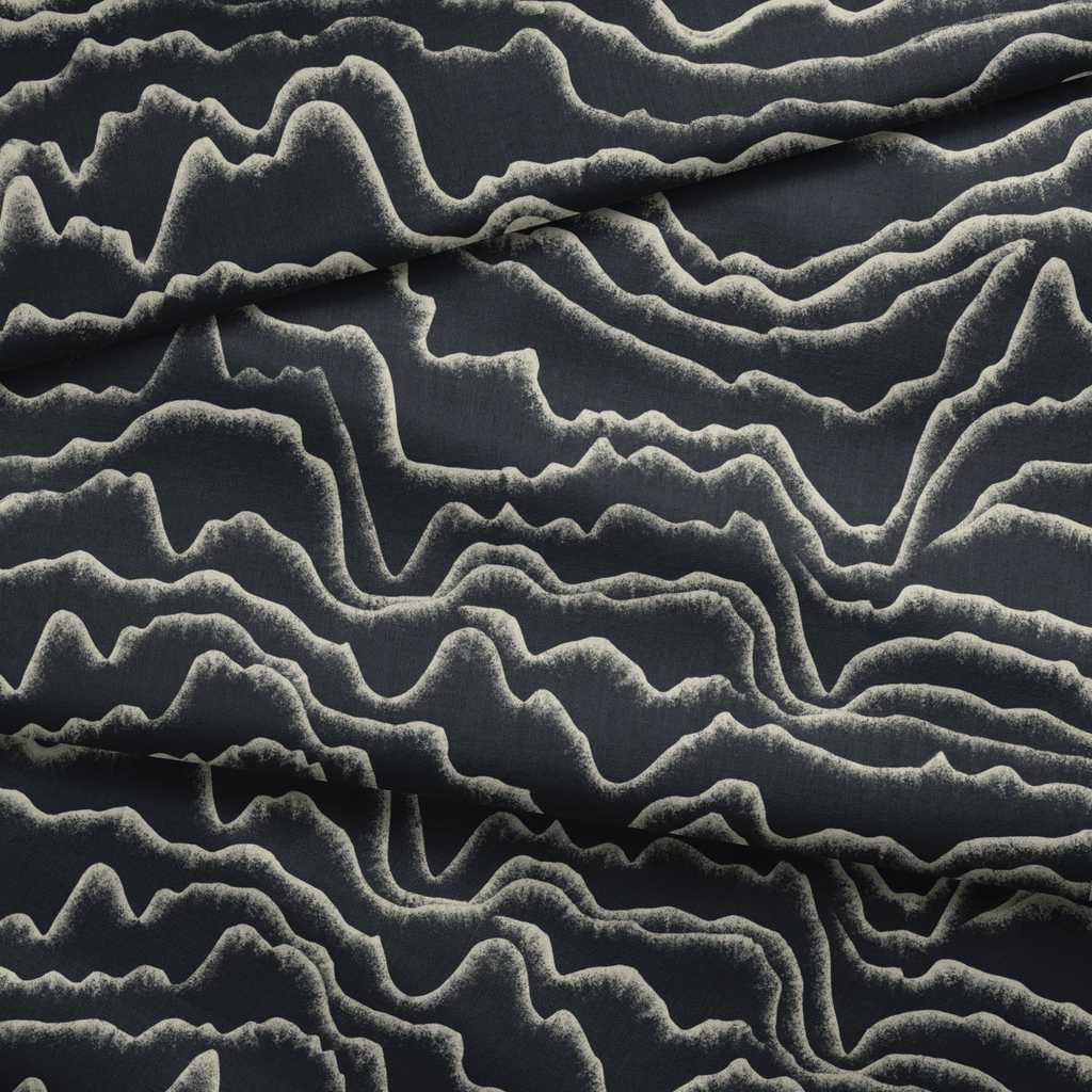Elegant wavy pattern in striking black and white tones with organic flowing lines, creating a soothing topographic-inspired design perfect for contemporary home decor or apparel.