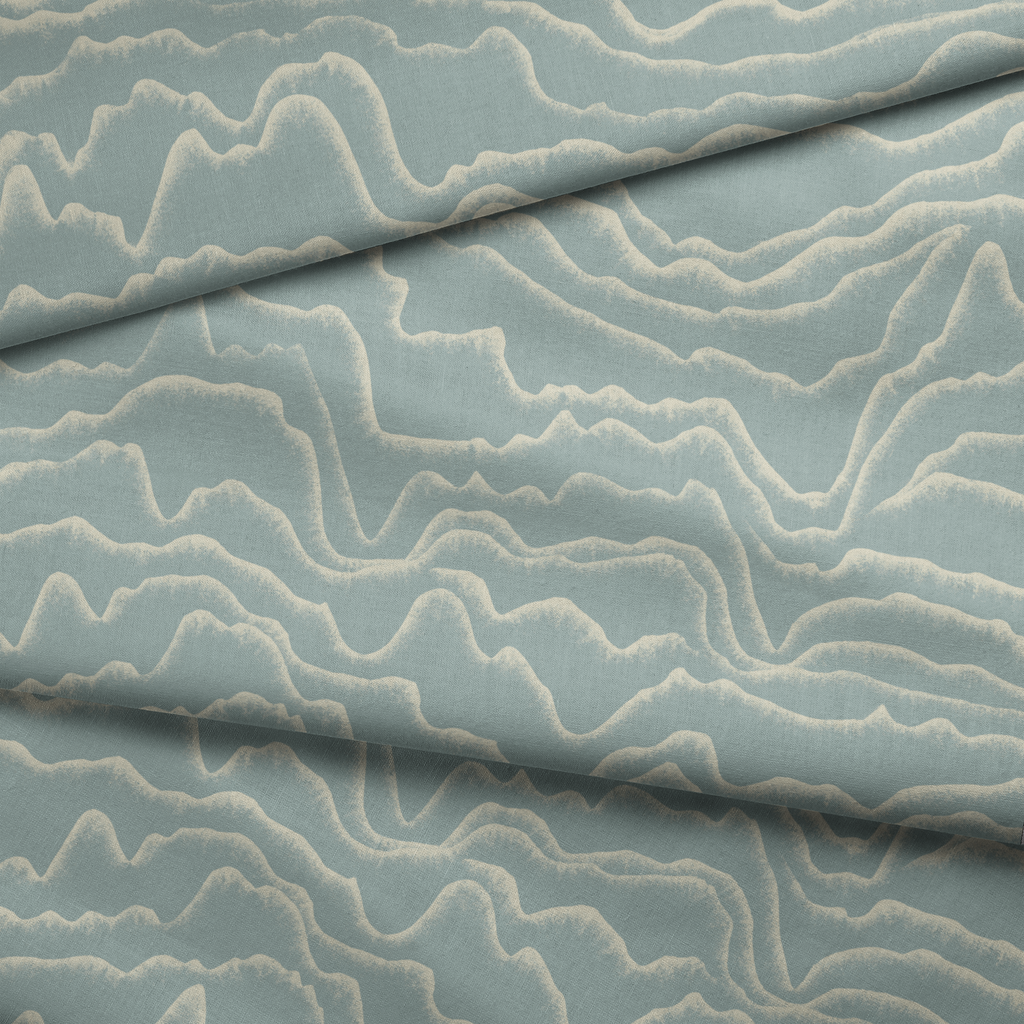Elegant wavy pattern in soothing blue-green tones creates a serene topographic effect, perfect for contemporary home decor or modern coastal-inspired spaces.