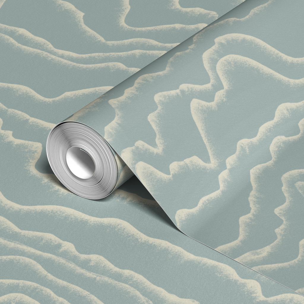 Elegant wavy pattern in soothing blue-green tones creates a serene topographic effect, perfect for contemporary home decor or modern coastal-inspired spaces.