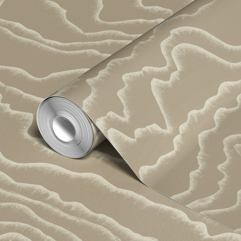 Elegant wavy pattern in neutral beige tones with organic flowing lines creating a topographic or marbled effect. Perfect for contemporary home decor with a subtle, sophisticated aesthetic.