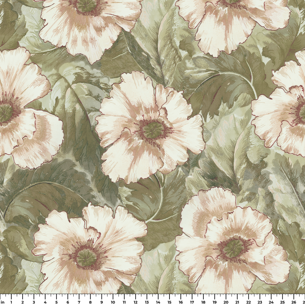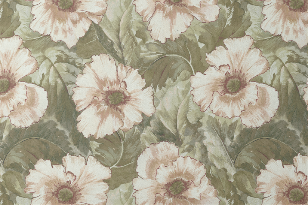 Elegant watercolor floral pattern featuring cream blossoms with subtle pink centers against sage green leaves with a vintage, romantic aesthetic.