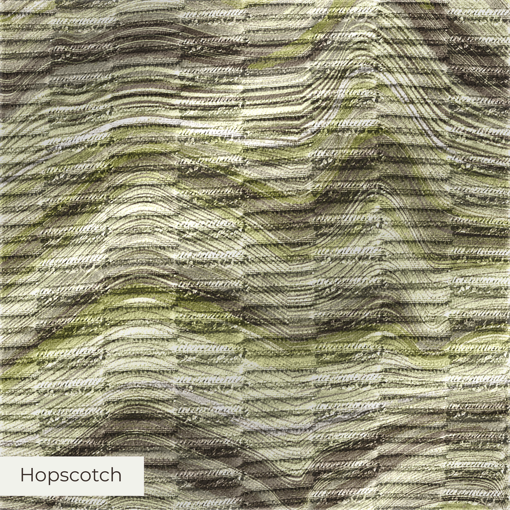 A bold, playful upholstery fabric with raised rectangular accents and subtle sheen. Hopscotch offers a modern architectural feel. Its tactile surface, durability, and design selection make it ideal for statement home decor pieces.