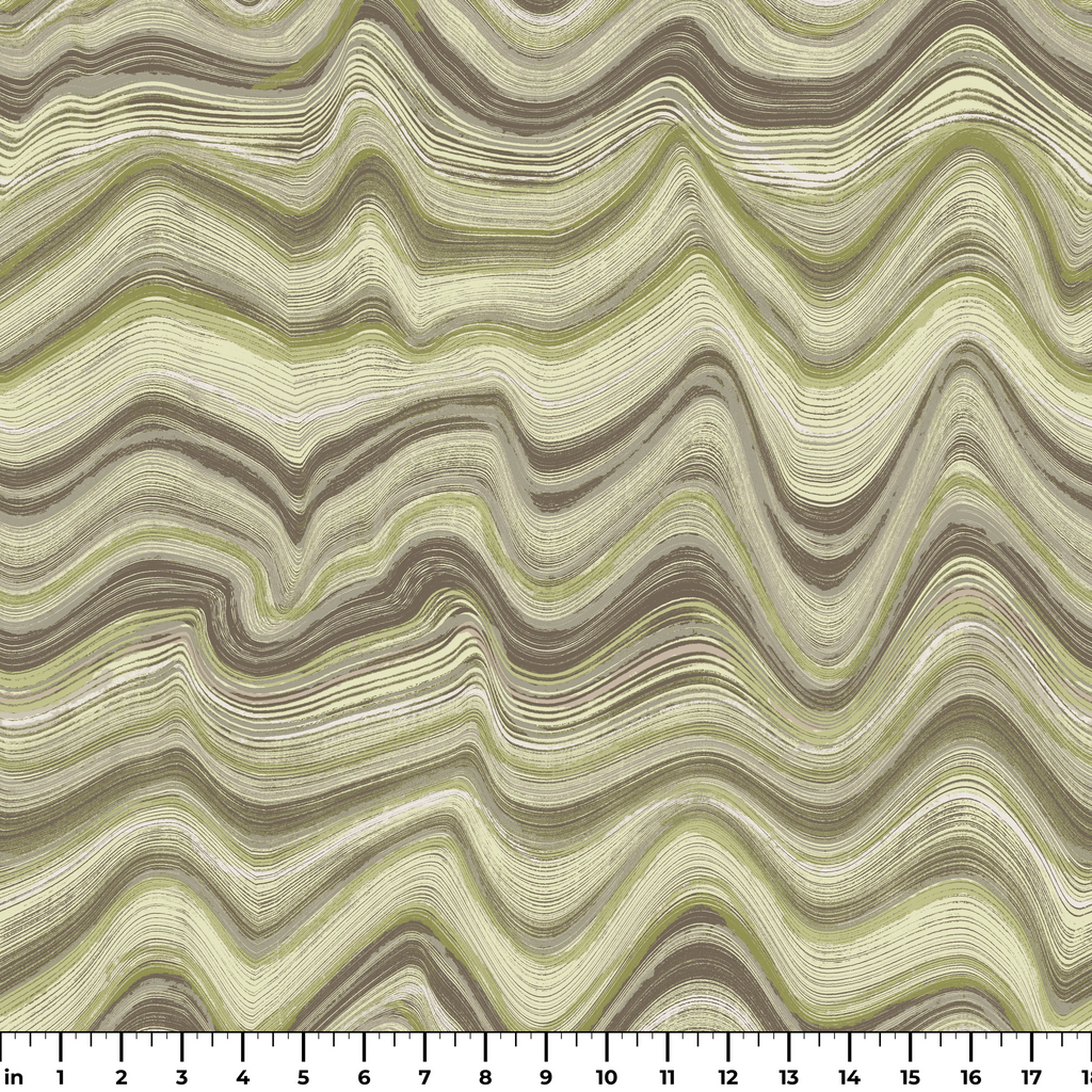 Elegante patrón ondulado en tonos suaves de verde y marrón que crea una sensación orgánica y fluida, perfecto para decoración moderna de interiores o proyectos textiles contemporáneos.