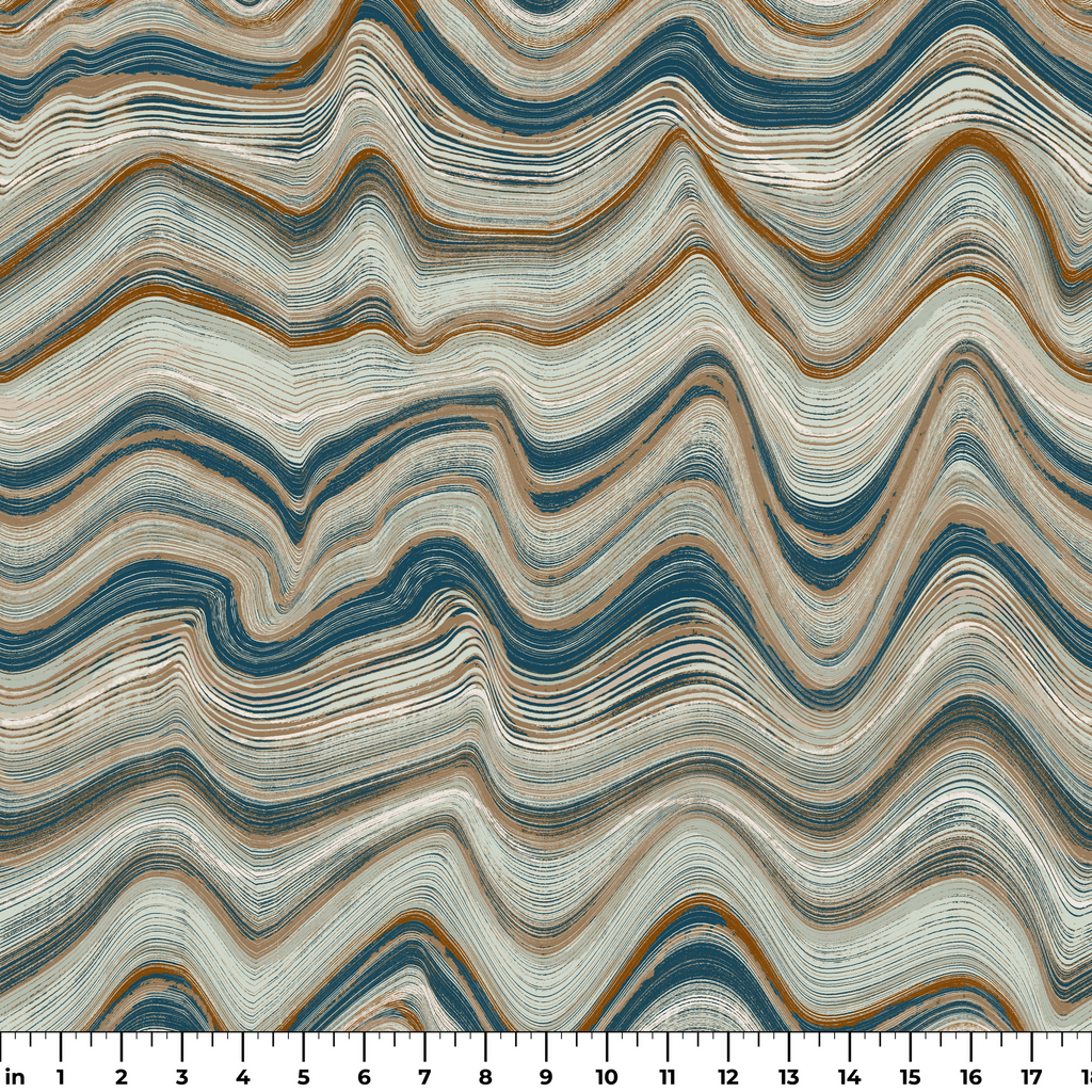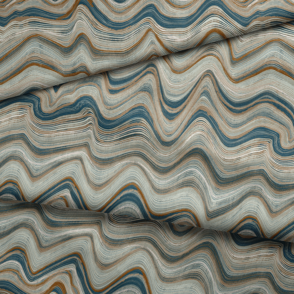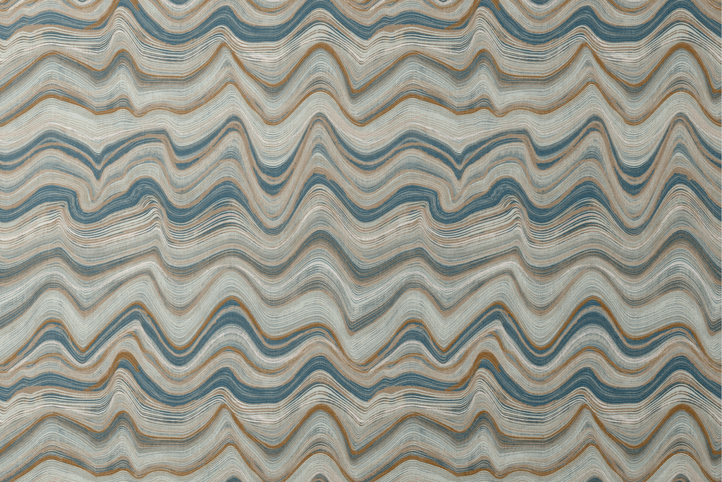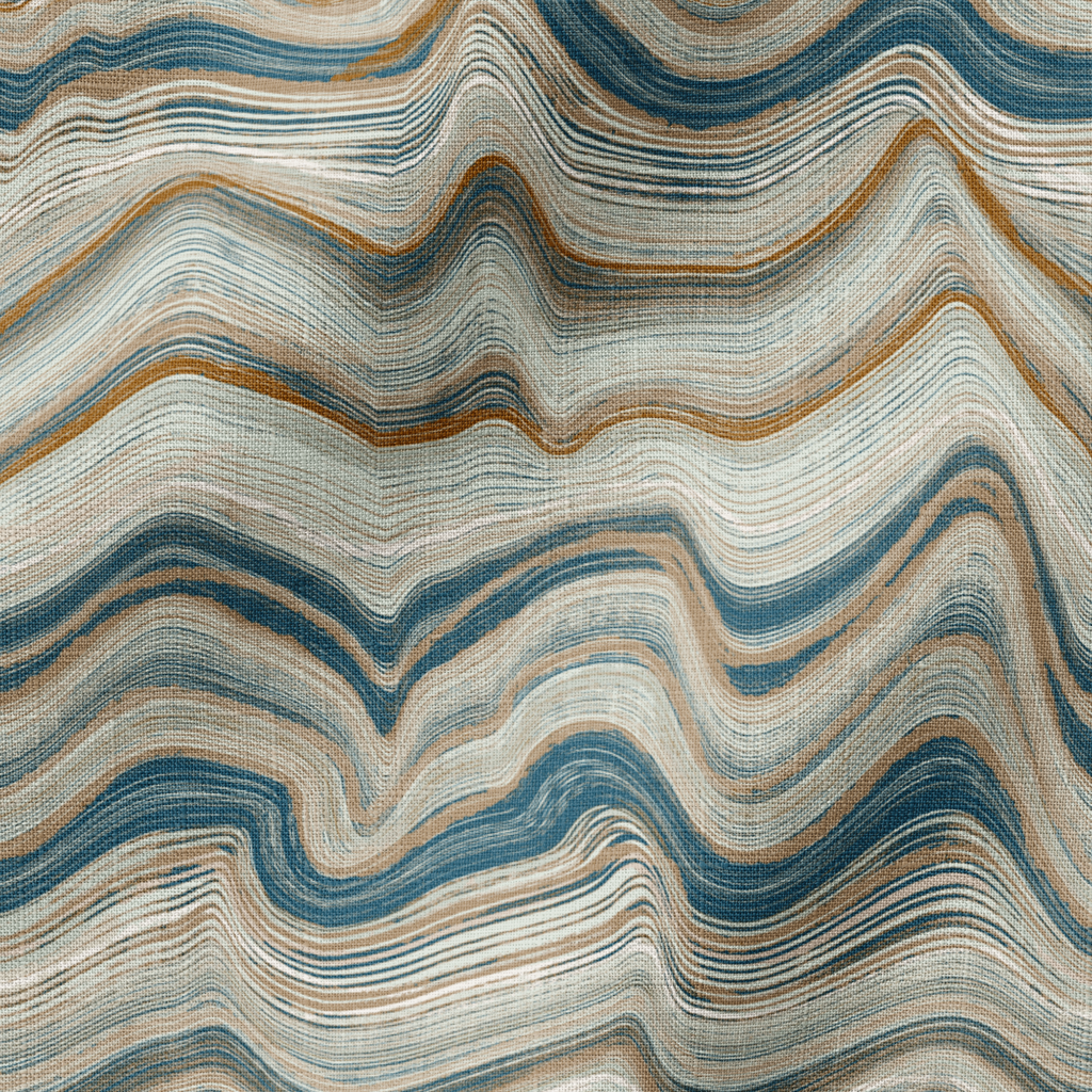 Elegant wavy pattern in undulating lines of deep blue, brown, and cream that create a mesmerizing marbled effect, perfect for adding sophisticated modern style to any room.