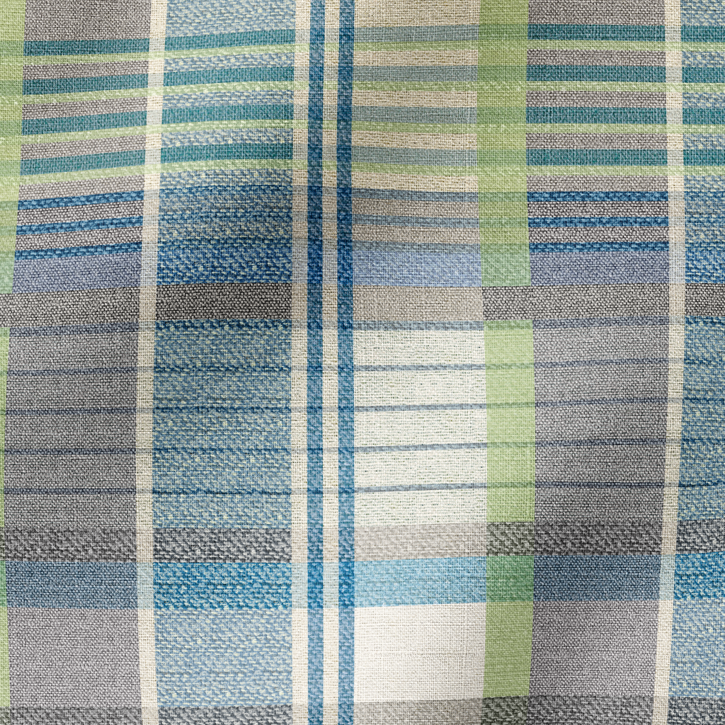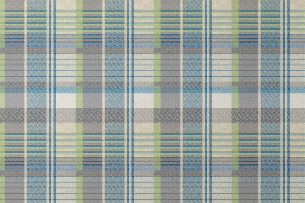 Classic plaid pattern in cool tones featuring blue, green, and gray stripes.