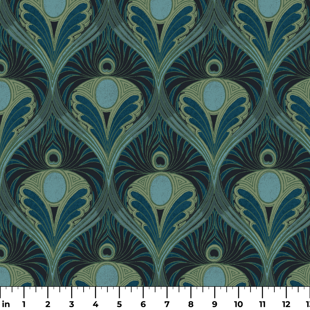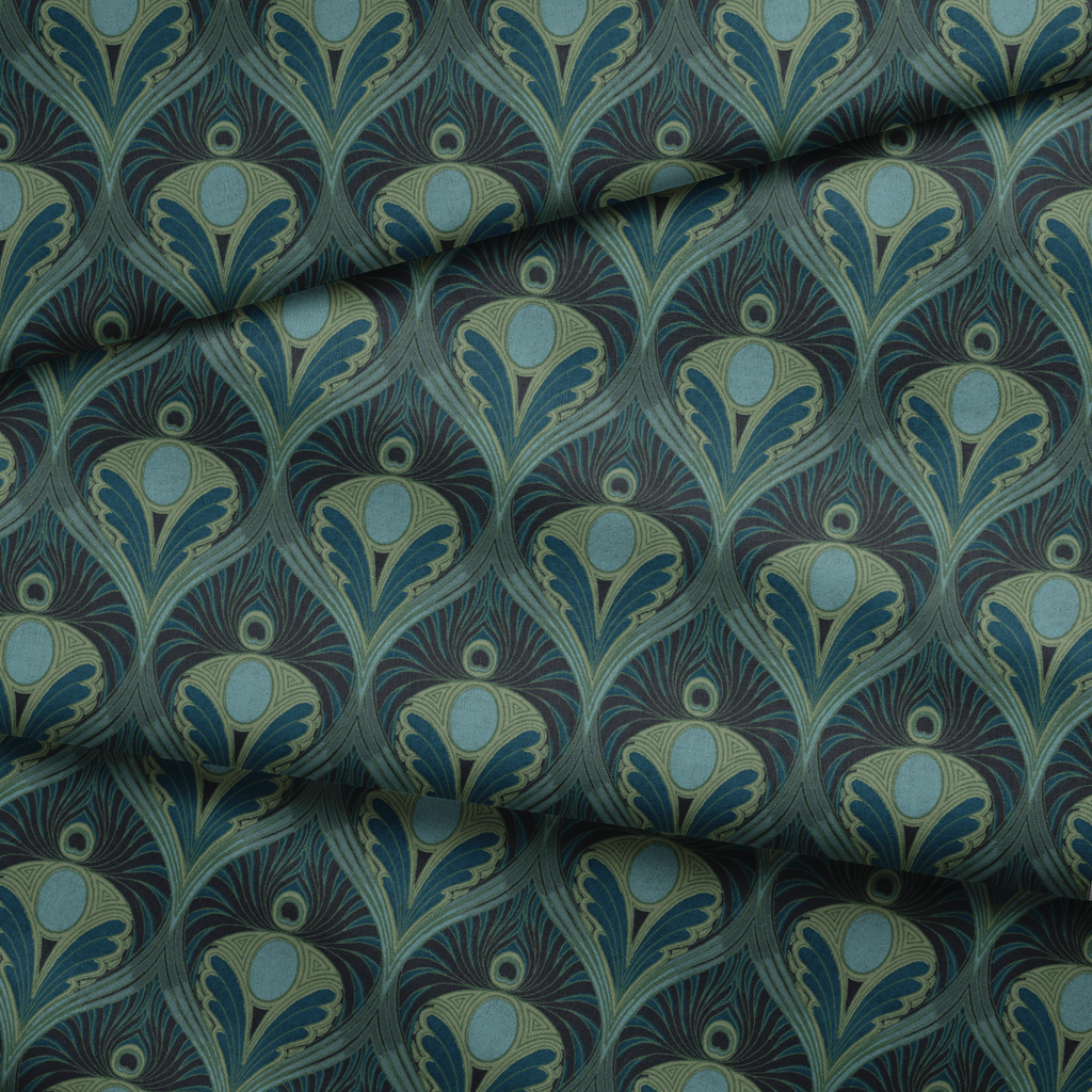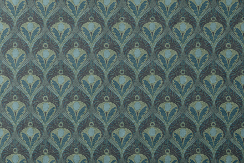 Elegant Art Nouveau style pattern featuring flowing organic forms in rich teal and muted sage tones, perfect for creating a sophisticated vintage atmosphere in heritage interiors.