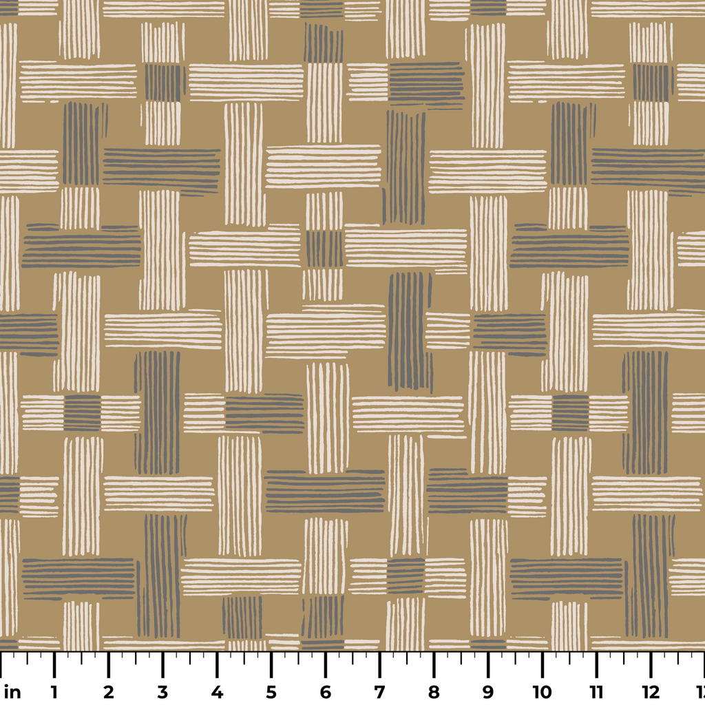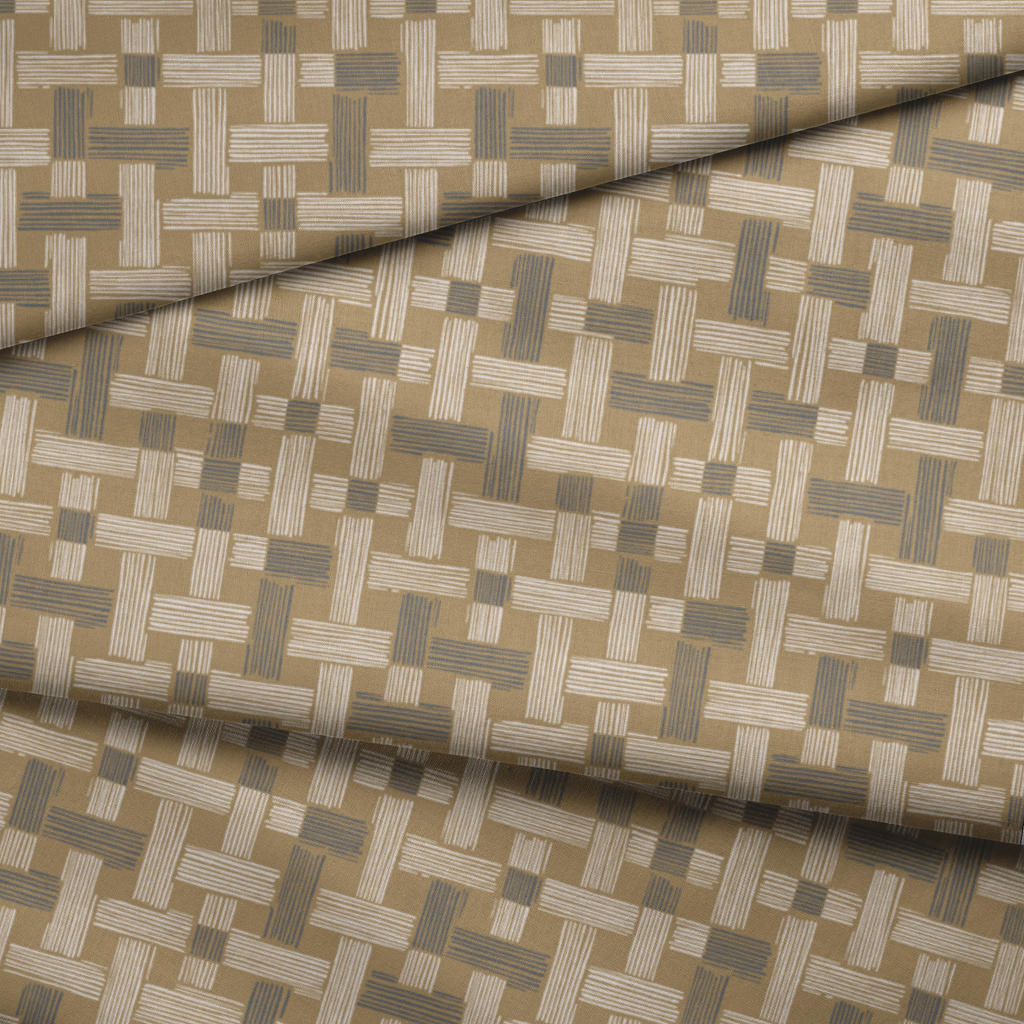 This modern woven pattern in pale gold and yellow tones with textured white lines creates a sophisticated basketweave design. Perfect for contemporary decor and adding visual interest to any space.