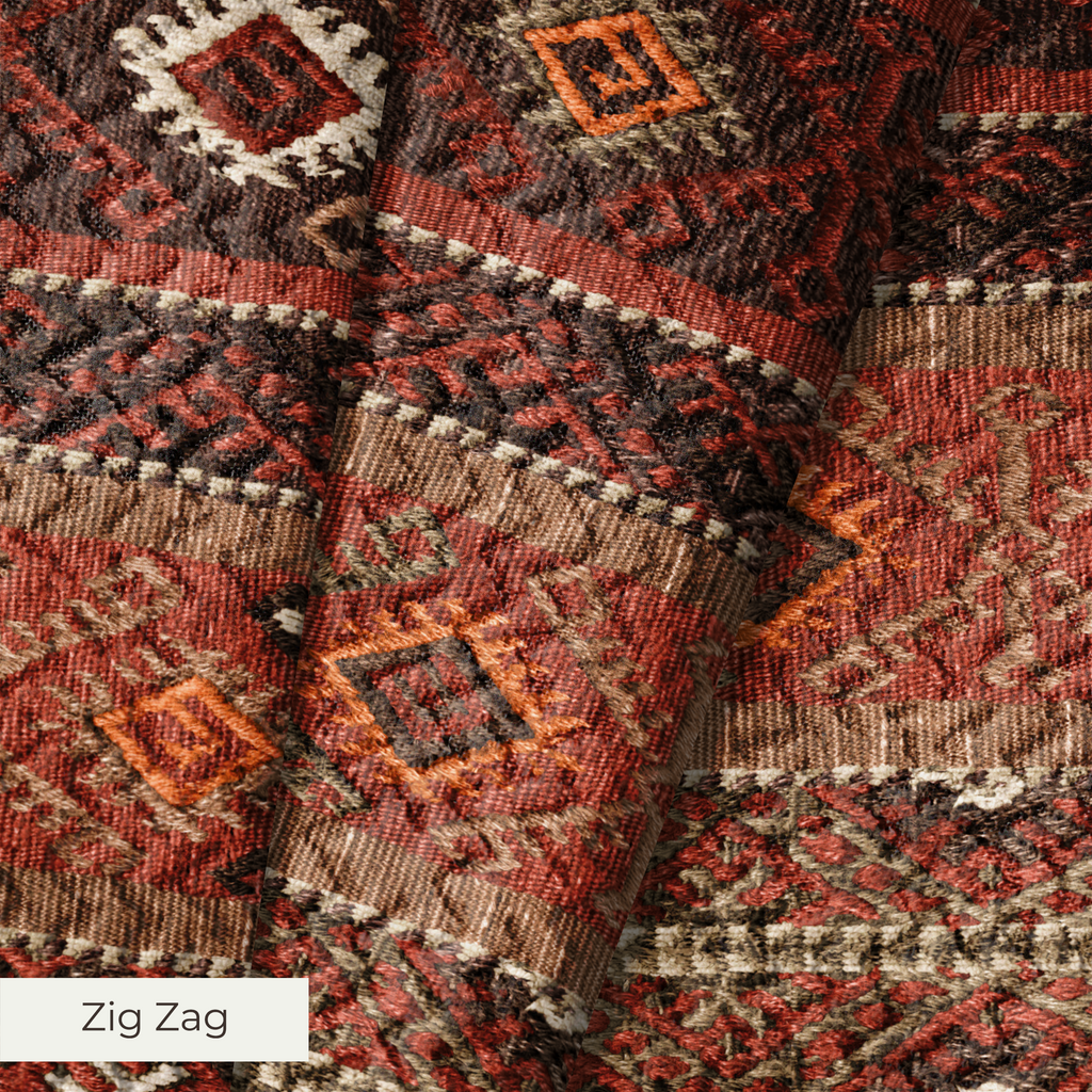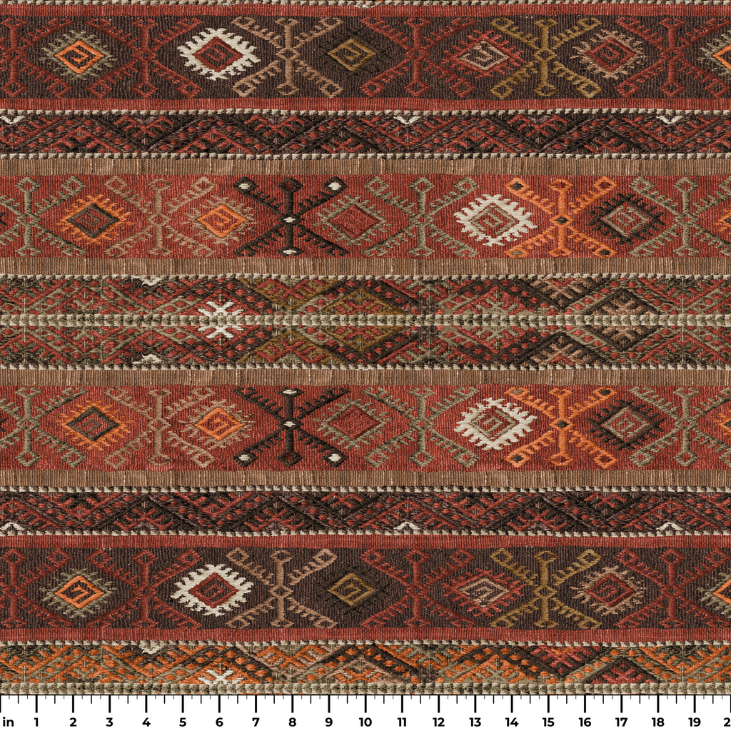 Traditional Southwest-inspired pattern featuring geometric motifs in earthy rust, brown, and cream tones. This tribal design evokes Native American textile artistry with alternating bands of diamond shapes and decorative elements.