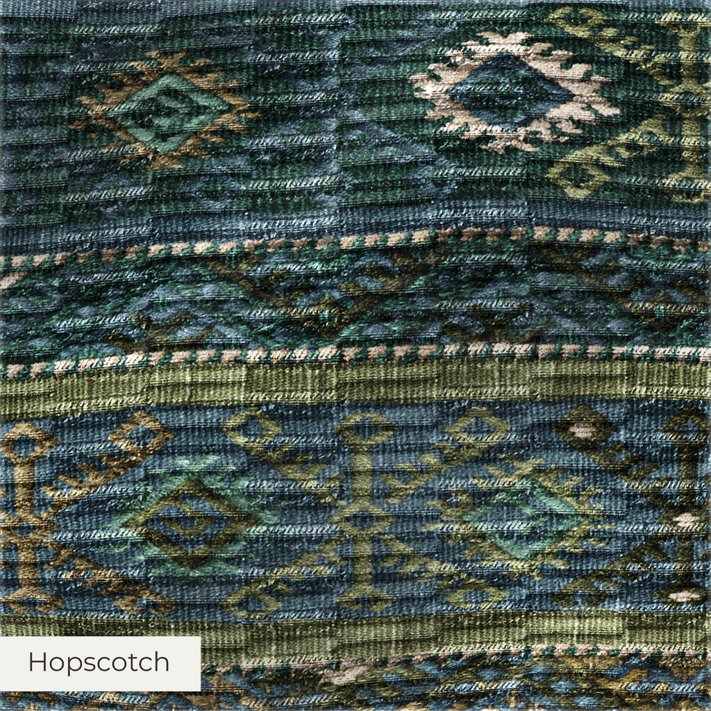 A bold, playful upholstery fabric with raised rectangular accents and subtle sheen. Hopscotch offers a modern architectural feel. Its tactile surface, durability, and design selection make it ideal for statement home decor pieces.