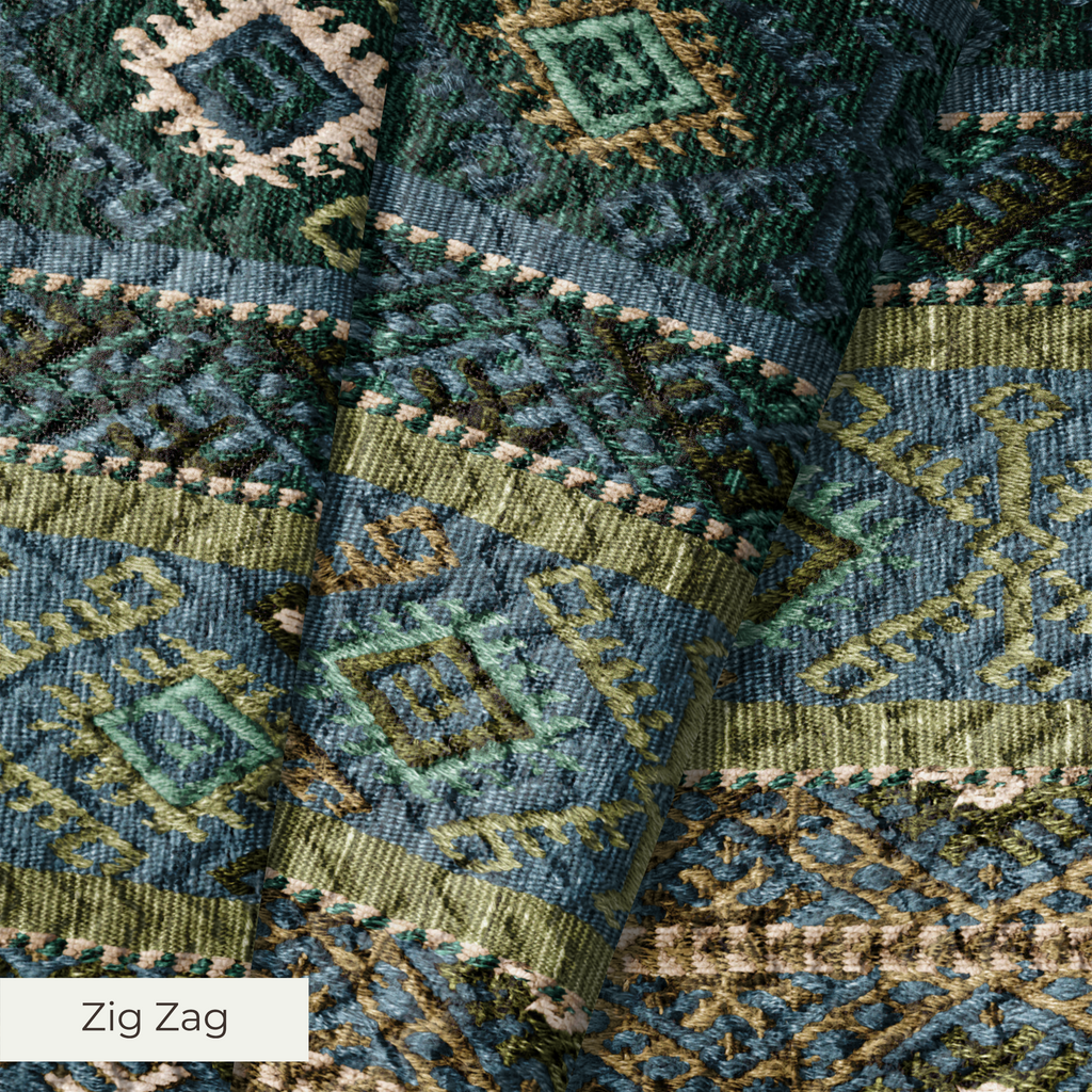 A sophisticated jacquard featuring a vertical geometric zigzag pattern with subtle sheen. Zig Zag's textured surface adds depth and dimension, offering commercial-grade durability and elegance for modern interiors.