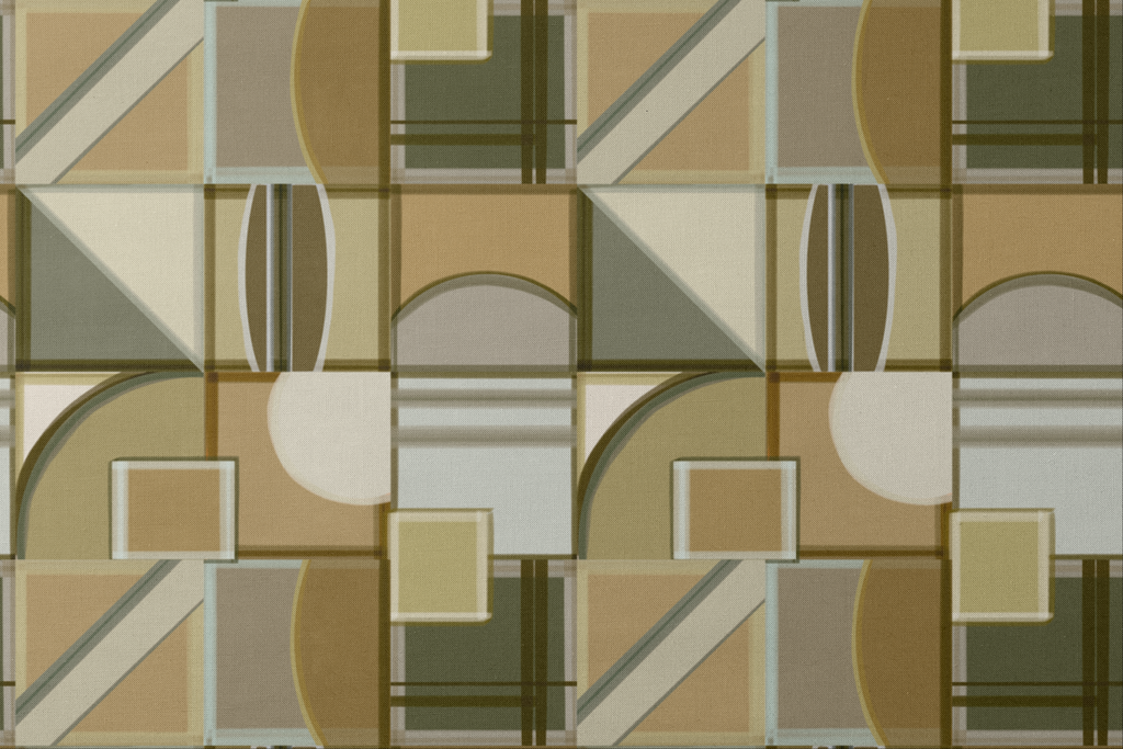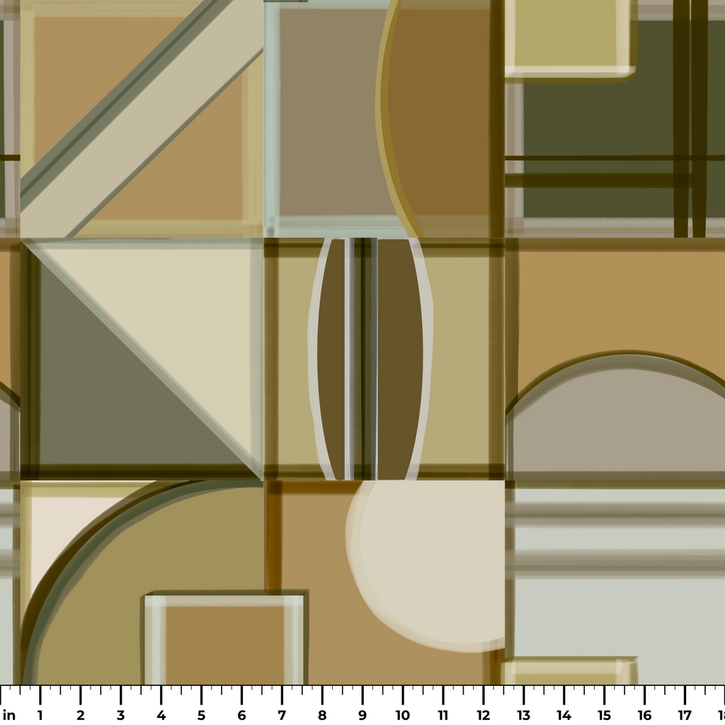 Sophisticated contemporary geometric design featuring overlapping squares, circles, and triangles for a serene mid-century modern aesthetic.