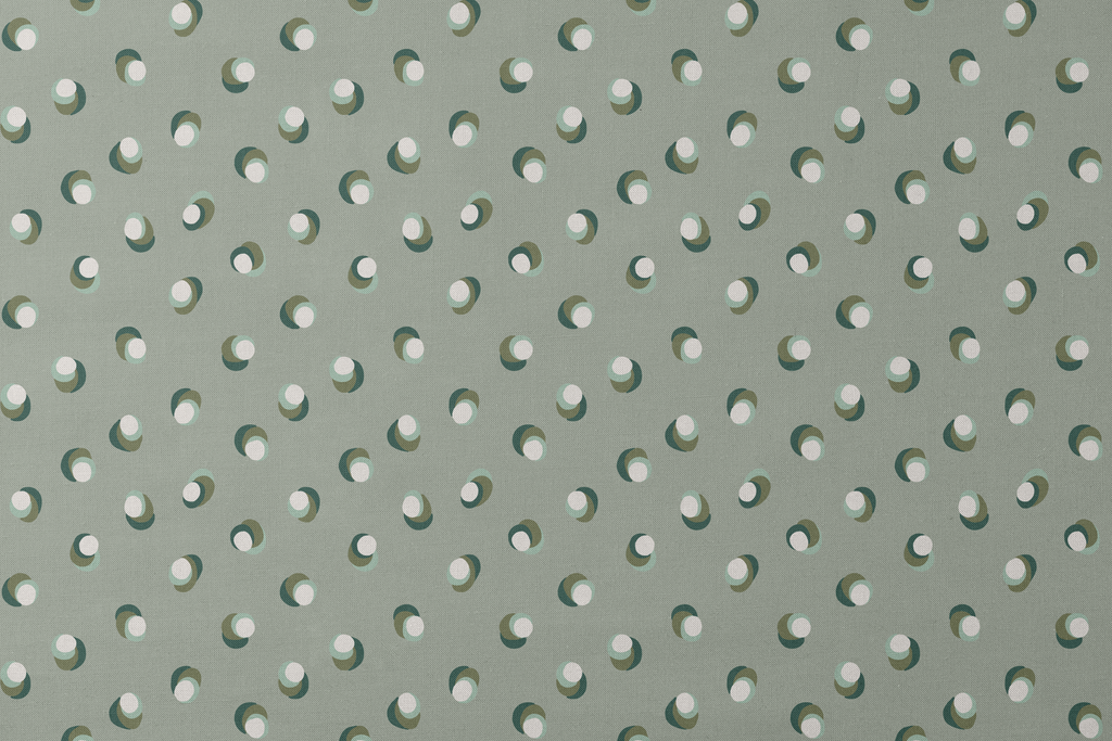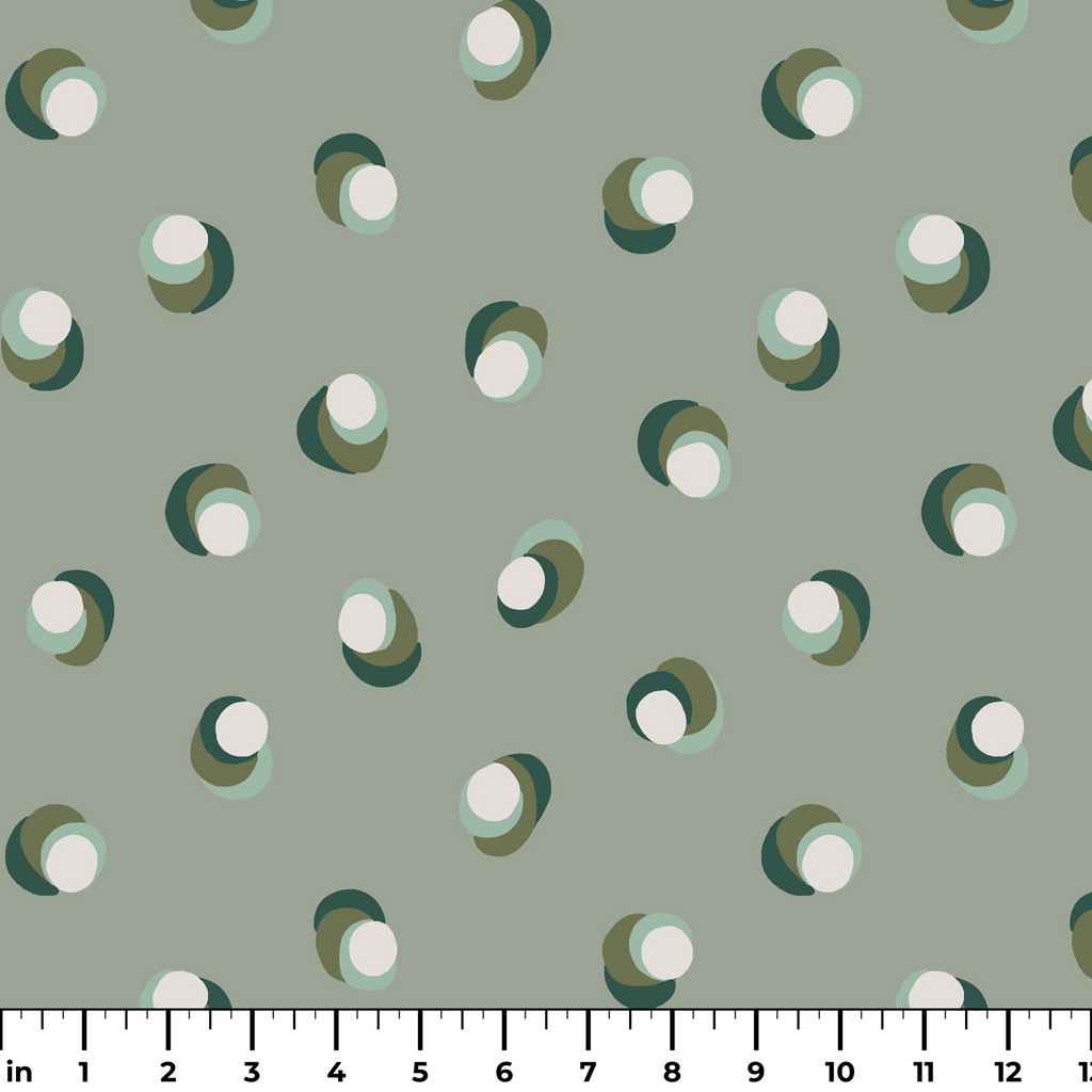 Modern geometric pattern with overlapping circles in sage, teal, and white on a muted gray-green background. Perfect for contemporary home decor with its calming, minimalist aesthetic.