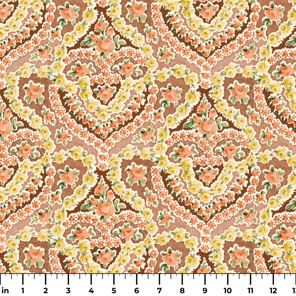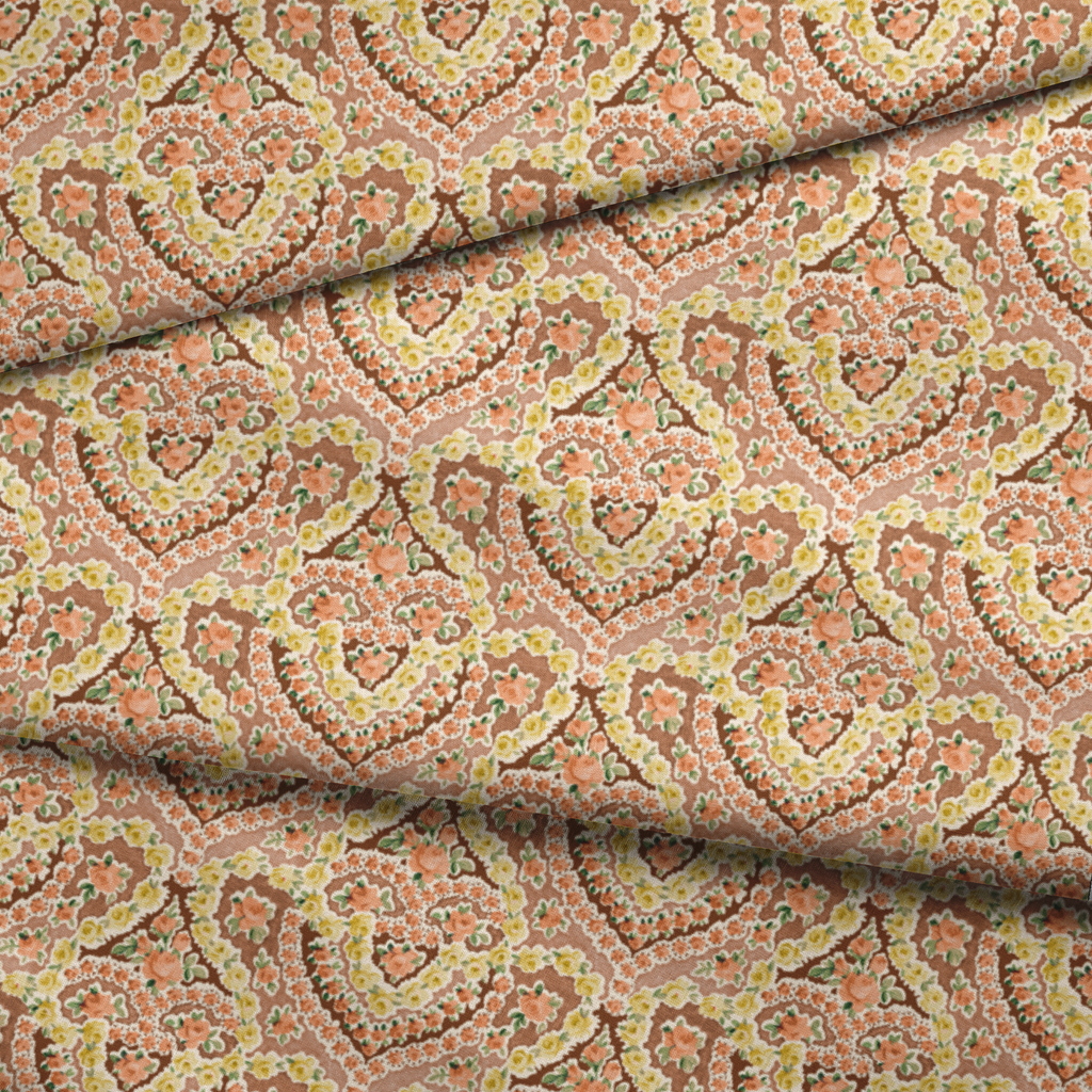 A richly detailed floral design with ornate medallion motifs and stylized blooms. Blending vintage charm with bohemian elegance, this pattern evokes a sense of eclectic, decorative tradition.