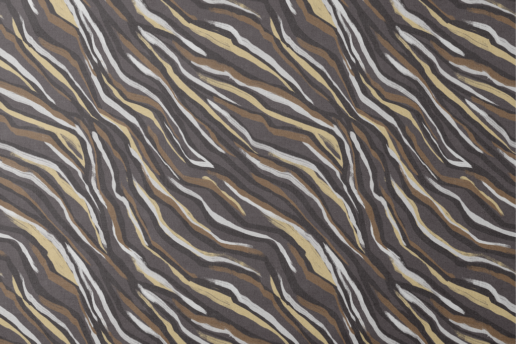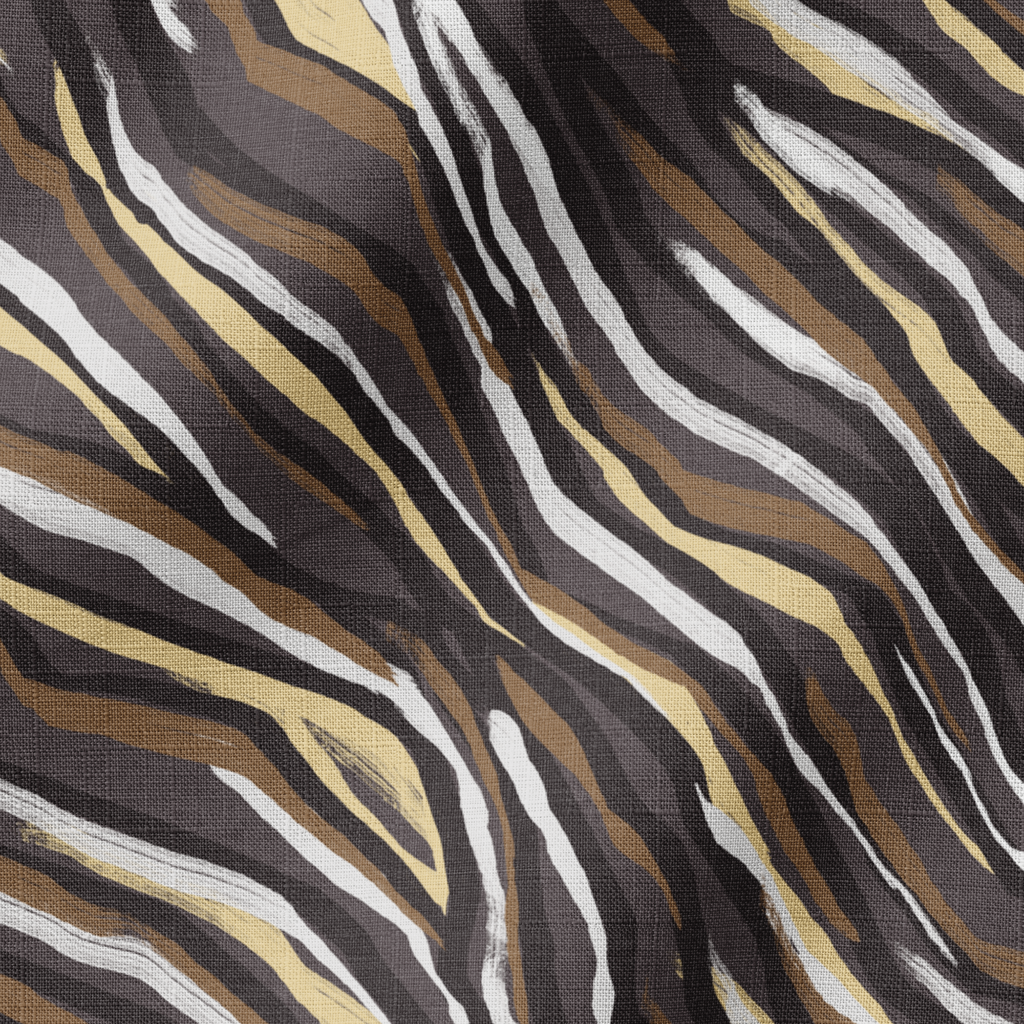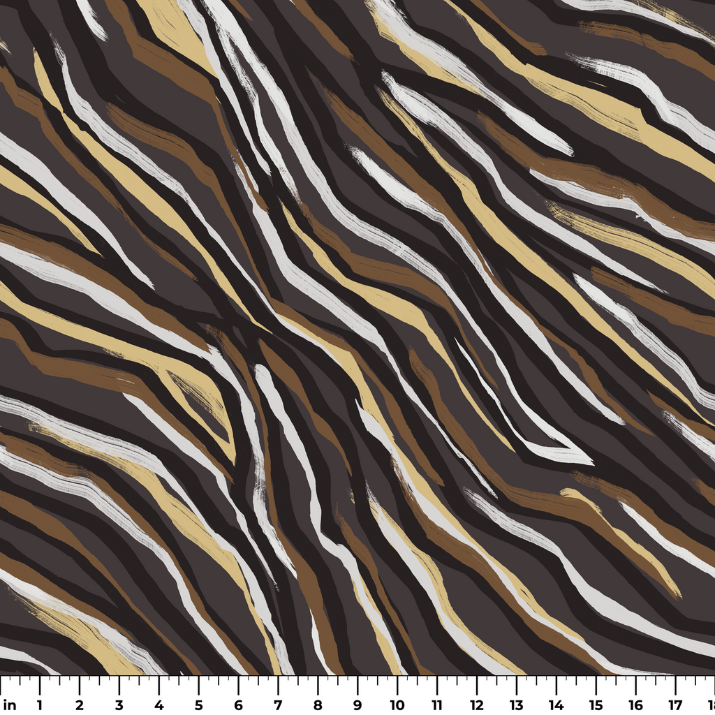 Sophisticated wavy stripe pattern in rich black, brown, gold, and white hues. Modern design with flowing organic lines creates an elegant abstract aesthetic perfect for contemporary home decor.