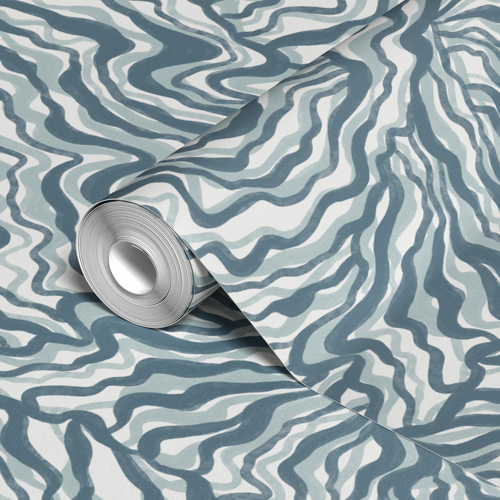 Elegant wavy pattern in cool tones featuring flowing organic lines in blue and white. Perfect for contemporary home decor with a sophisticated, abstract aesthetic.