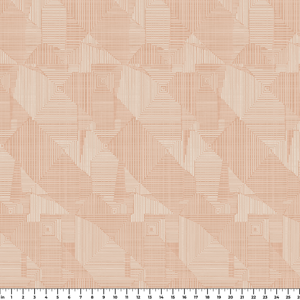 Contemporary geometric pattern featuring overlapping squares, stripes, and abstract shapes for a modern, sophisticated look.