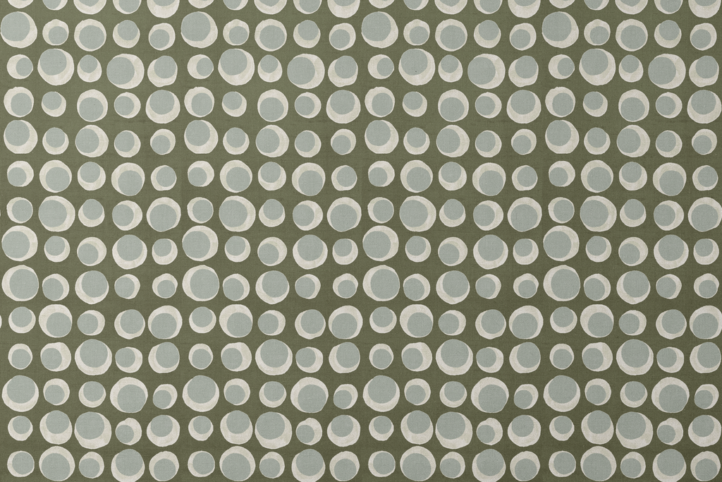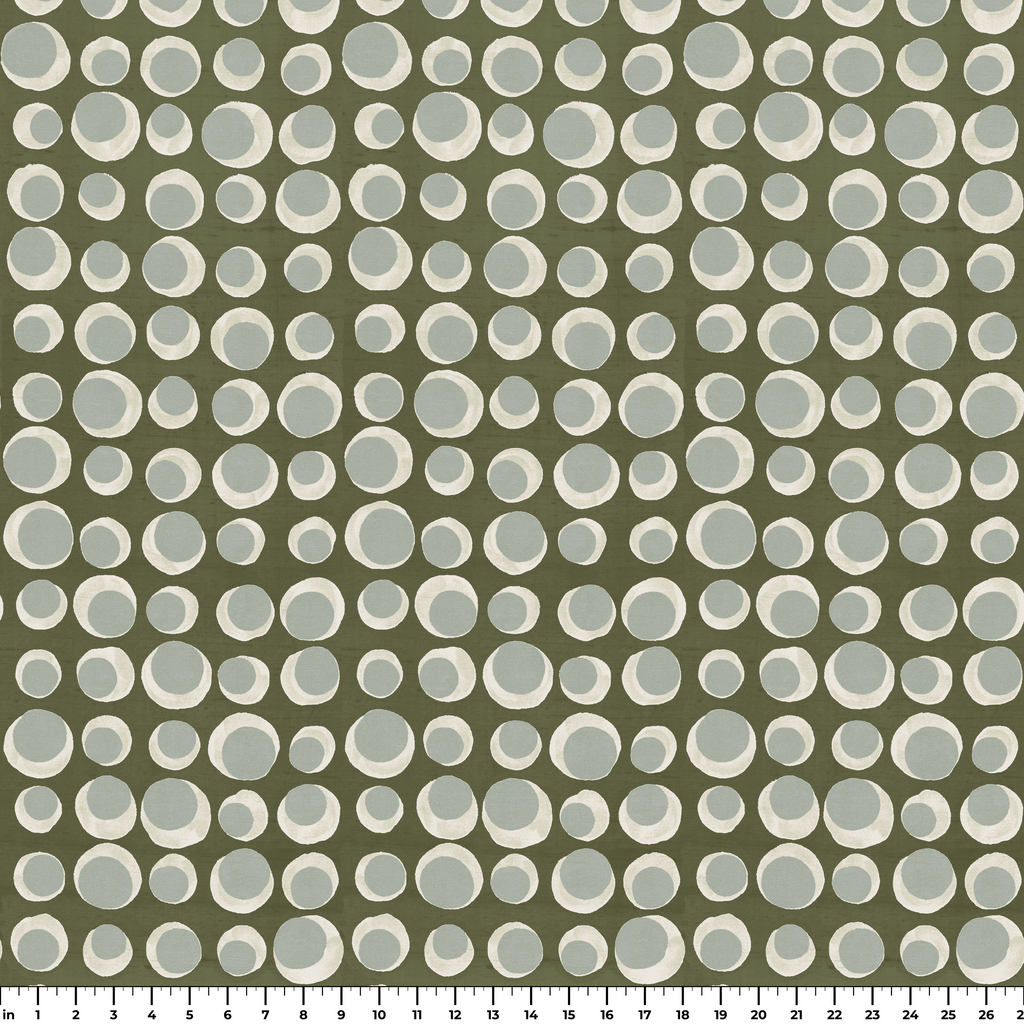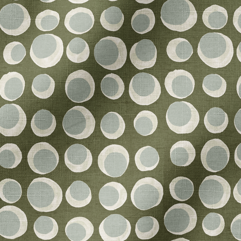 Contemporary geometric pattern featuring olive green and cream circles in a repeating layout. This modern design offers a stylish retro feel with organic dot shapes arranged in a seamless grid.