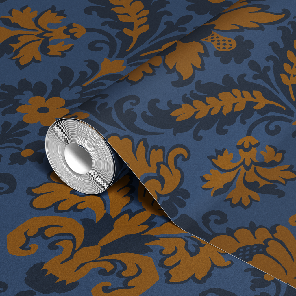 Exquisite damask floral design features ornate scrolls and botanical elements in a traditional heritage style with sophisticated Victorian design influences.