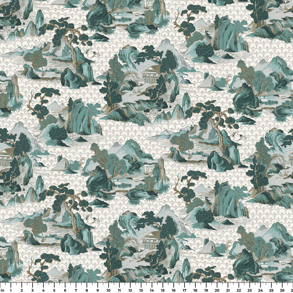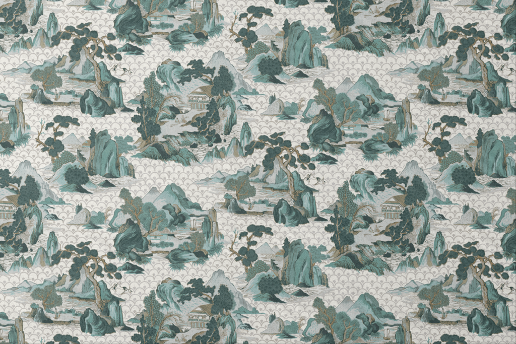 This elegant Asian-inspired pattern features traditional mountain landscapes. The heritage design showcases scenic natural elements with a timeless cultural aesthetic.