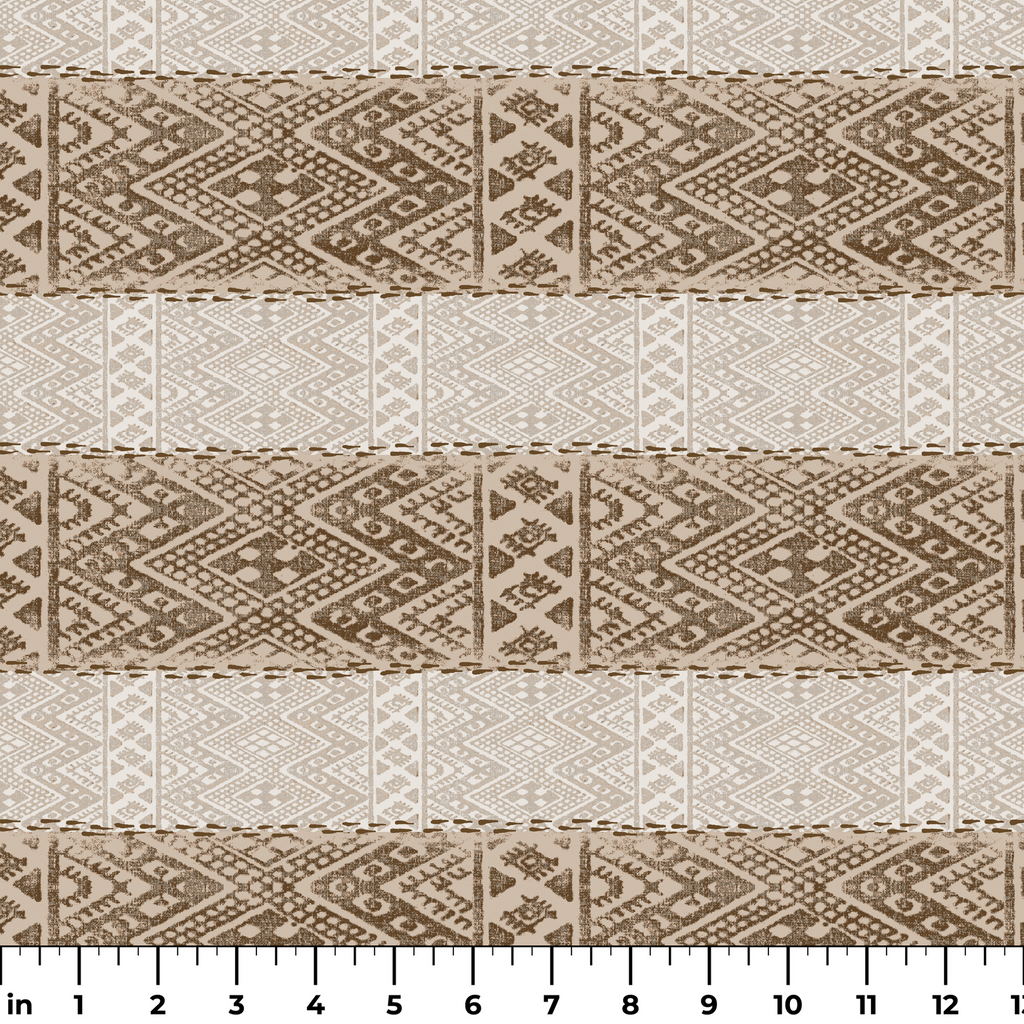 Traditional geometric pattern featuring intricate diamond and tribal motifs in brown and beige tones, perfect for heritage-inspired flair to any space.