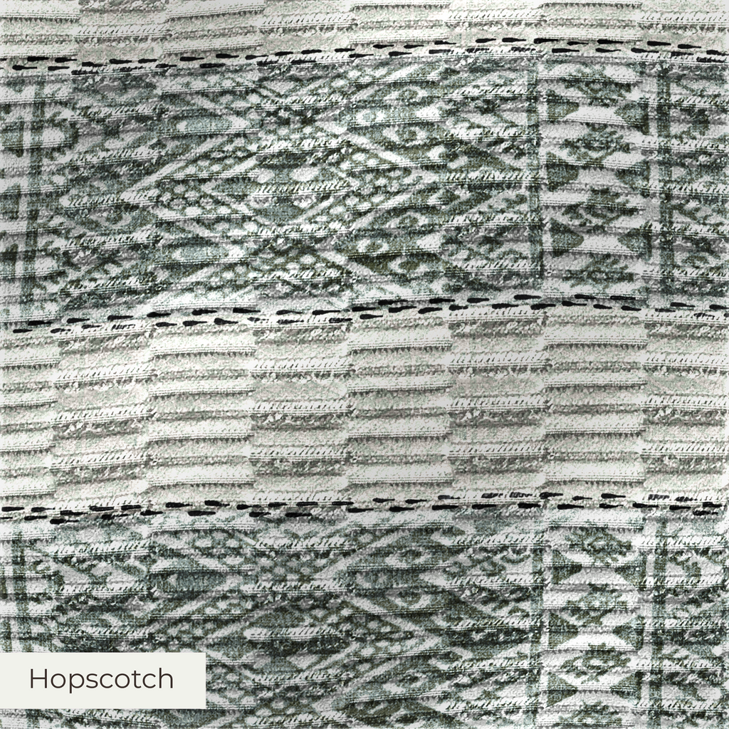 A bold, playful upholstery fabric with raised rectangular accents and subtle sheen. Hopscotch offers a modern architectural feel. Its tactile surface, durability, and design selection make it ideal for statement home decor pieces.
