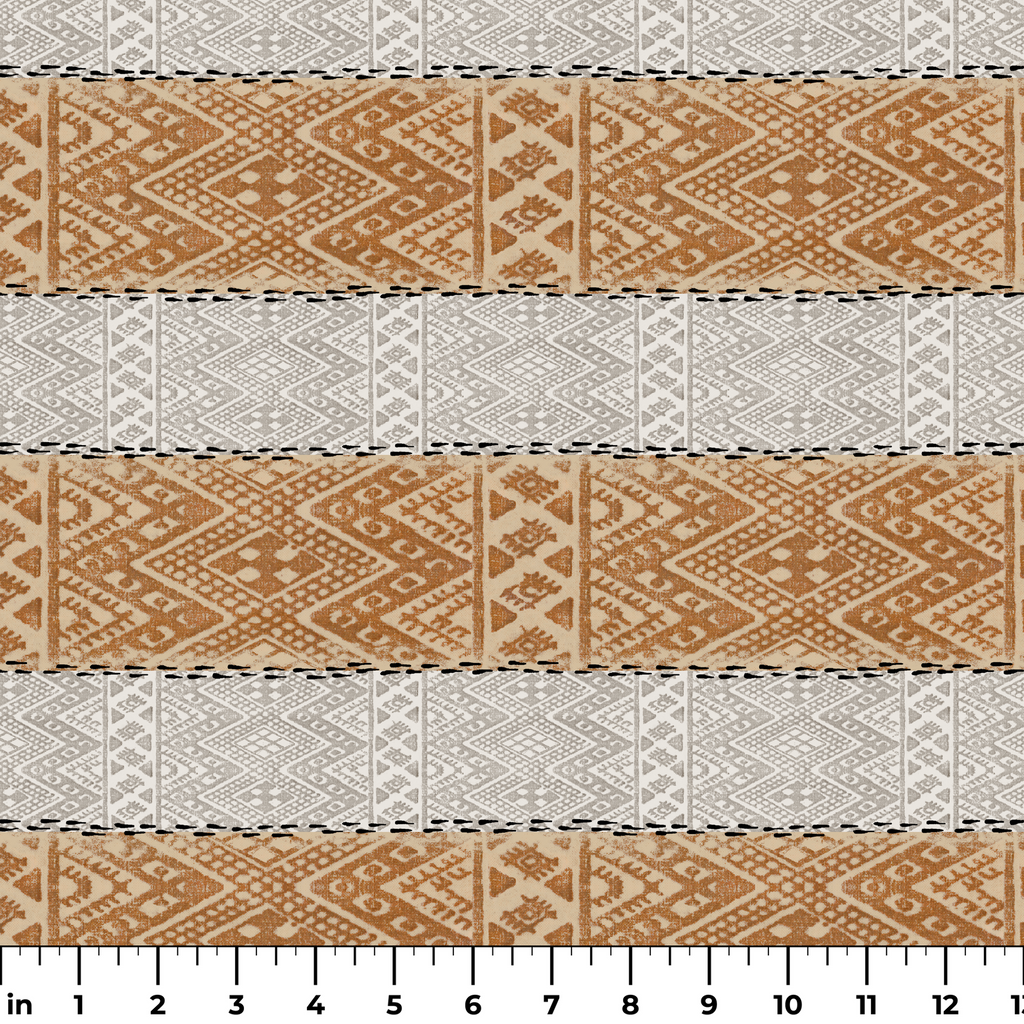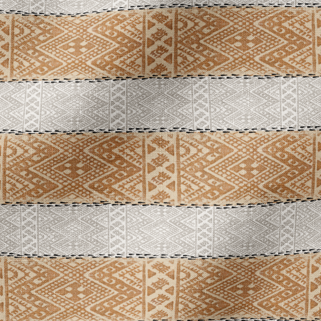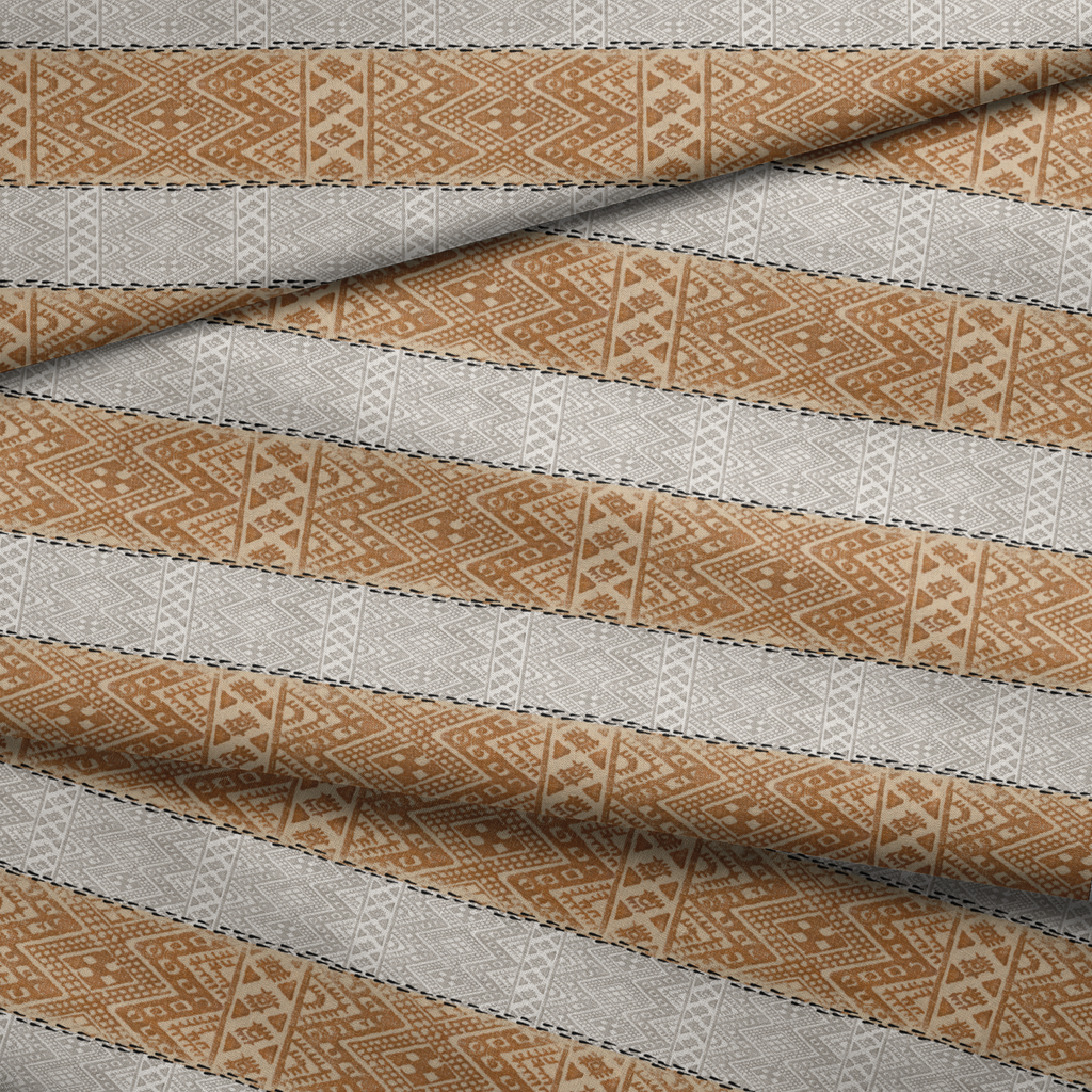 Traditional geometric pattern featuring intricate diamond and tribal motifs in rust and golden brown tones, perfect for heritage-inspired flair to any space.