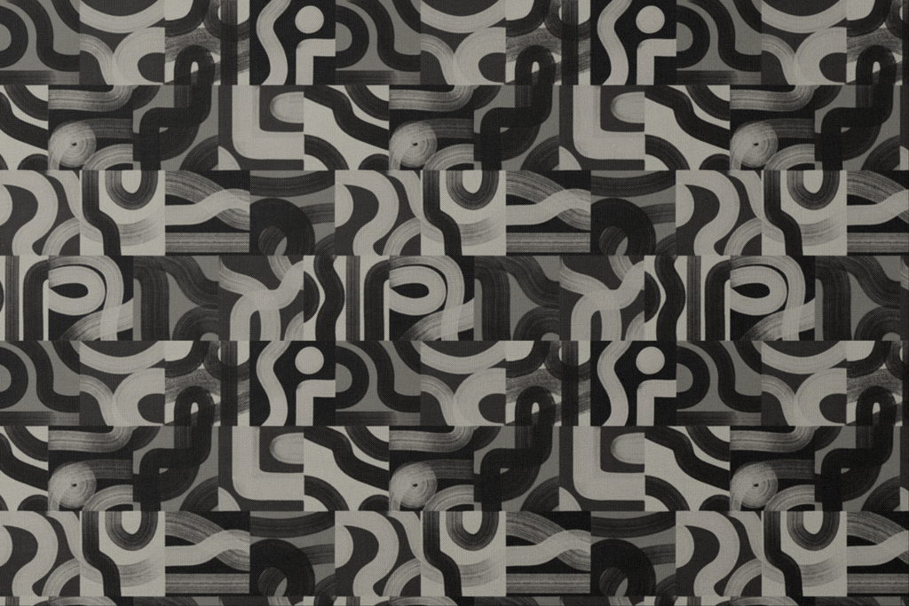 Abstract geometric pattern in a contemporary style featuring interlocking curves and organic shapes, perfect for modern decor.