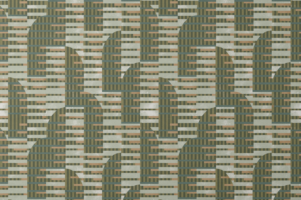 Sophisticated geometric pattern in earthy green tones with abstract angular shapes creating a modern yet heritage-inspired design perfect for upholstery or home decor.