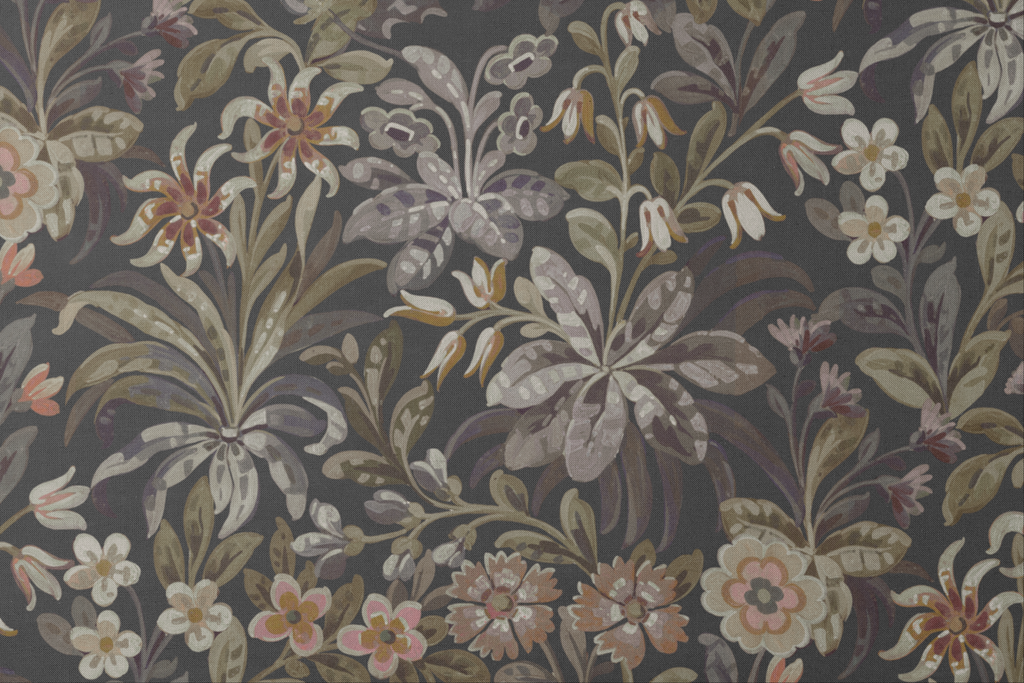 Elegant botanical design in brown with lush flowers and foliage, perfect for creating a classic and sophisticated atmosphere in any room of your home.