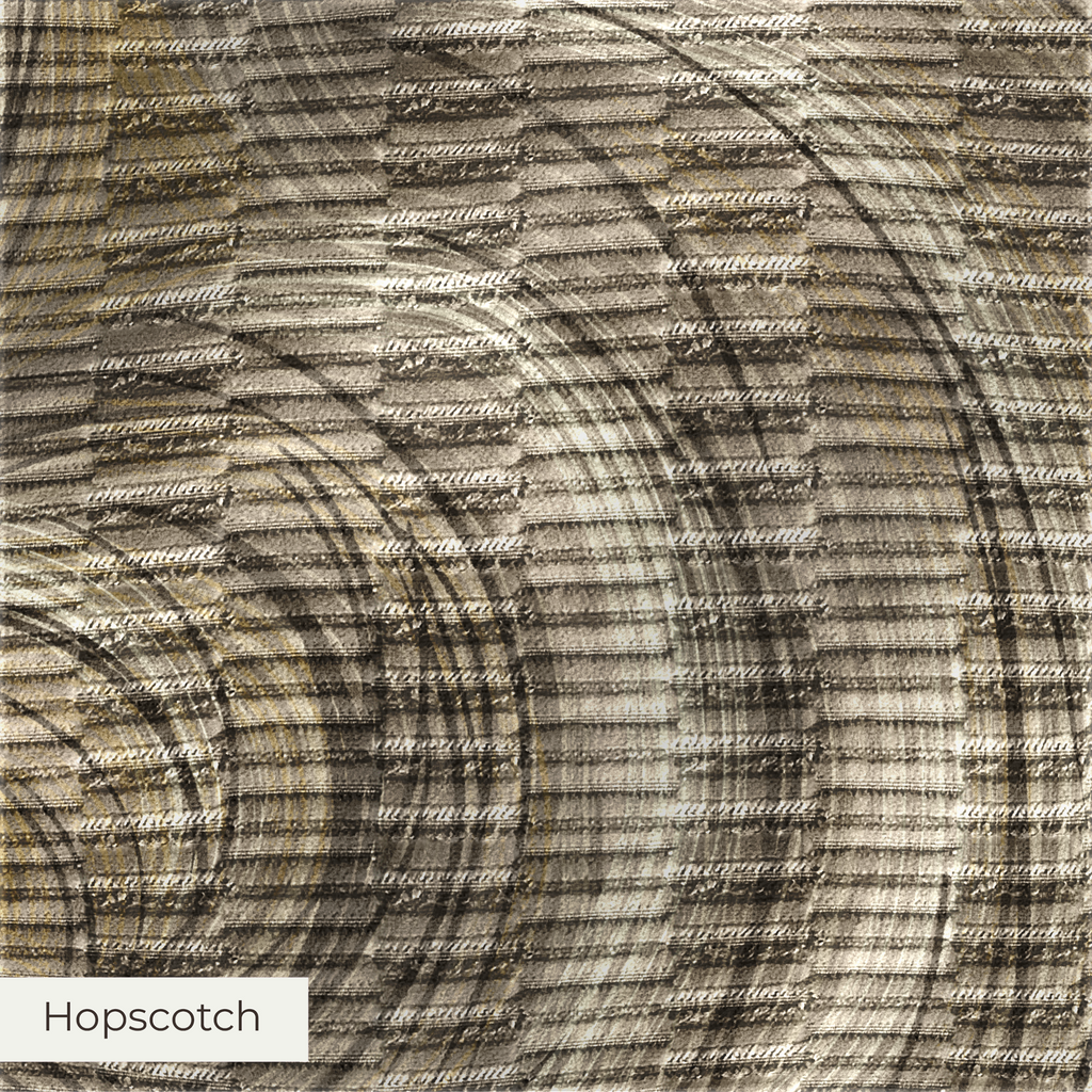 A bold, playful upholstery fabric with raised rectangular accents and subtle sheen. Hopscotch offers a modern architectural feel. Its tactile surface, durability, and design selection make it ideal for statement home decor pieces.