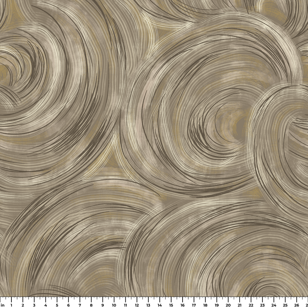 Elegant swirling curves in neutral tones create a sophisticated contemporary pattern, perfect for upholstery or home decor with its flowing organic forms and weathered beige and taupe palette.