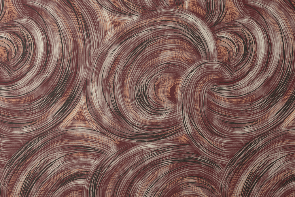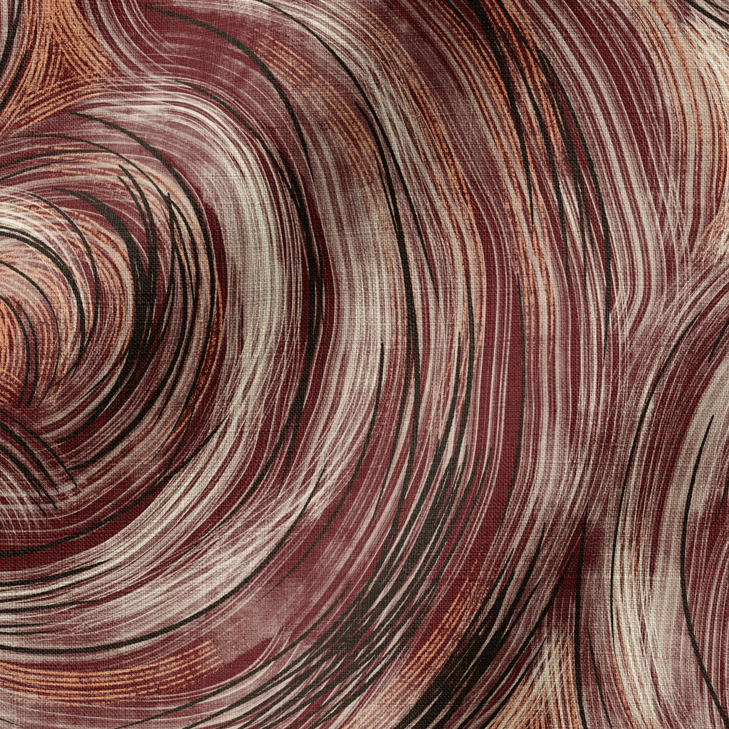 Contemporary abstract swirls in rich burgundy tones create a hypnotic pattern with flowing curved lines and circular motions, perfect for modern home decor.