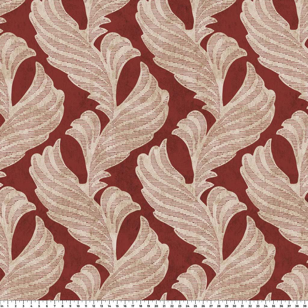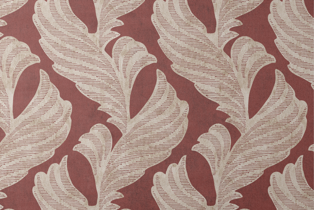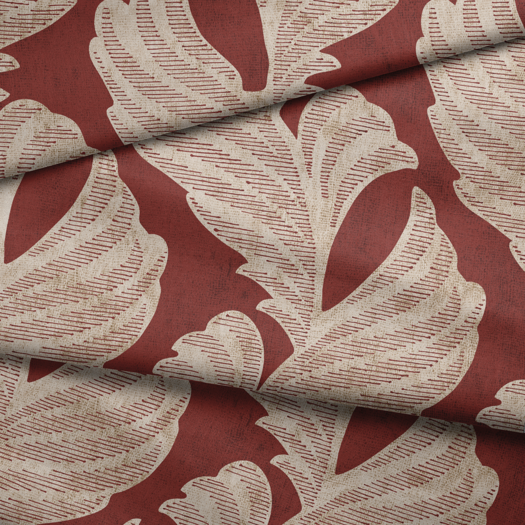 Elegant white foliage pattern on a rich burgundy background creates a sophisticated, flowing design perfect for contemporary home decor.
