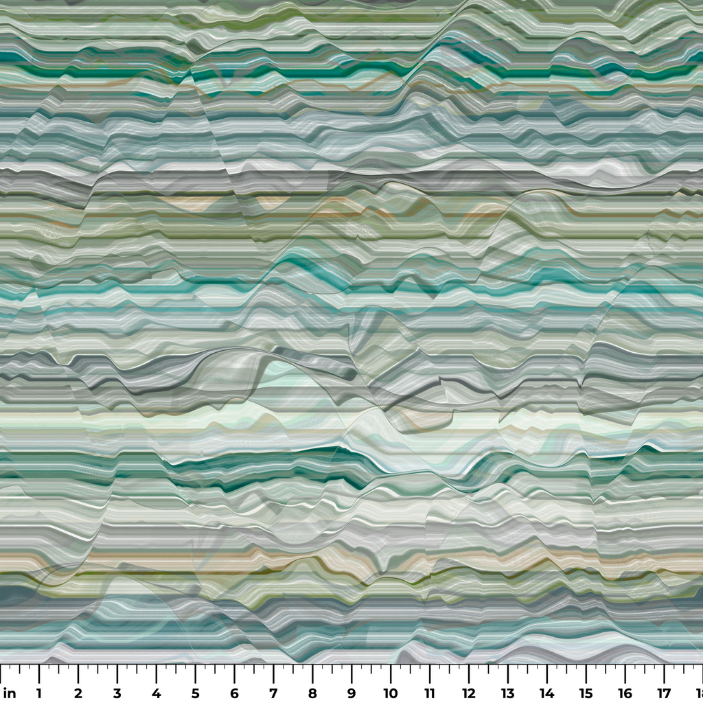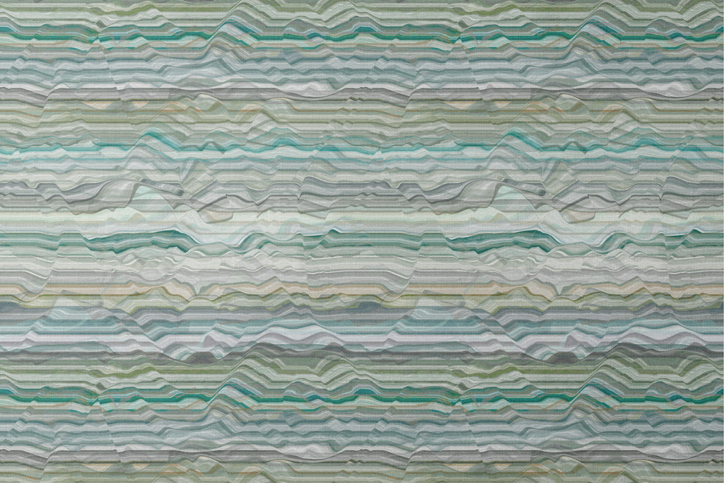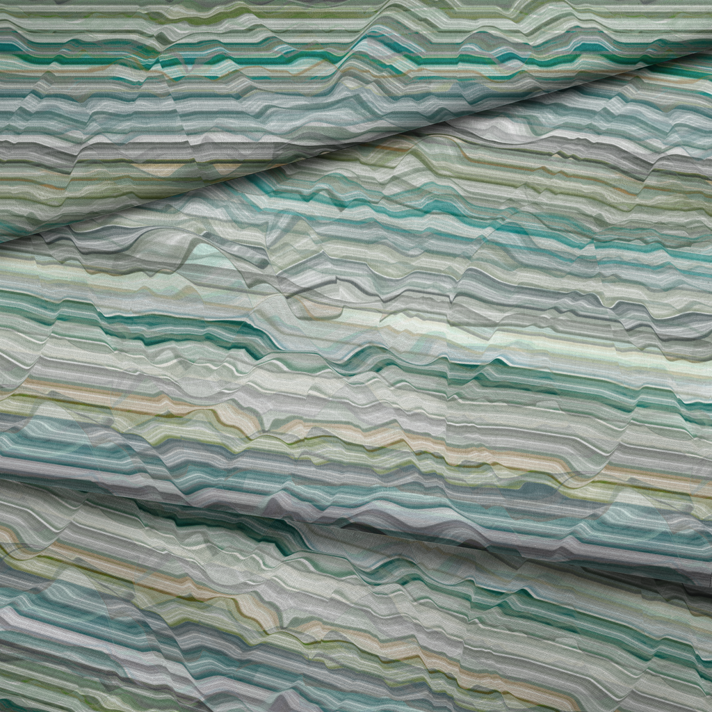 Elegant layered ocean tones create a contemporary abstract pattern reminiscent of natural sediment formations. The flowing lines in muted teal, gray, and green offer a sophisticated organic texture for modern home decor.