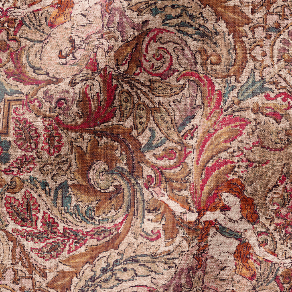 Exquisite vintage pattern featuring elaborate swirls and ornate motifs in rich burgundy and beige tones. Perfect for elegant home décor and classic interior design.