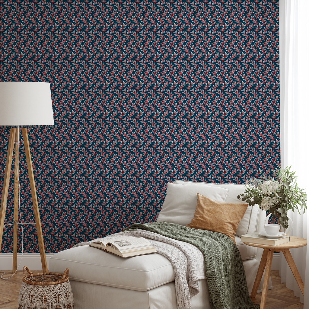 Nautical coral pattern featuring organic branching shapes on a deep navy background. Perfect for coastal-inspired rooms with its classic yet contemporary design.