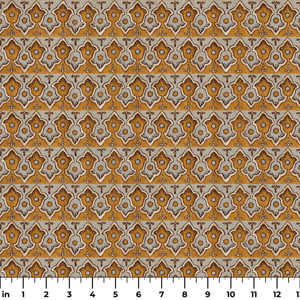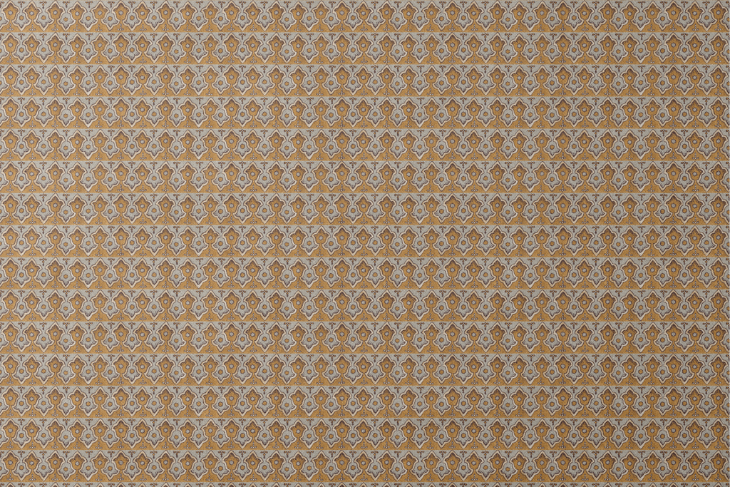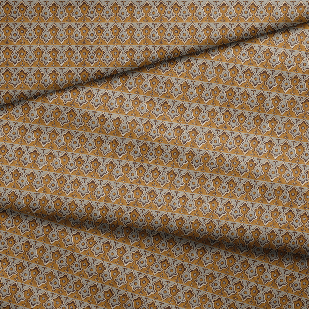 Vintage ornamental border featuring a traditional Mediterranean motif in golden brown and pale blue. This heritage design showcases decorative floral elements with geometric details in an elegant pattern, ideal for any space.