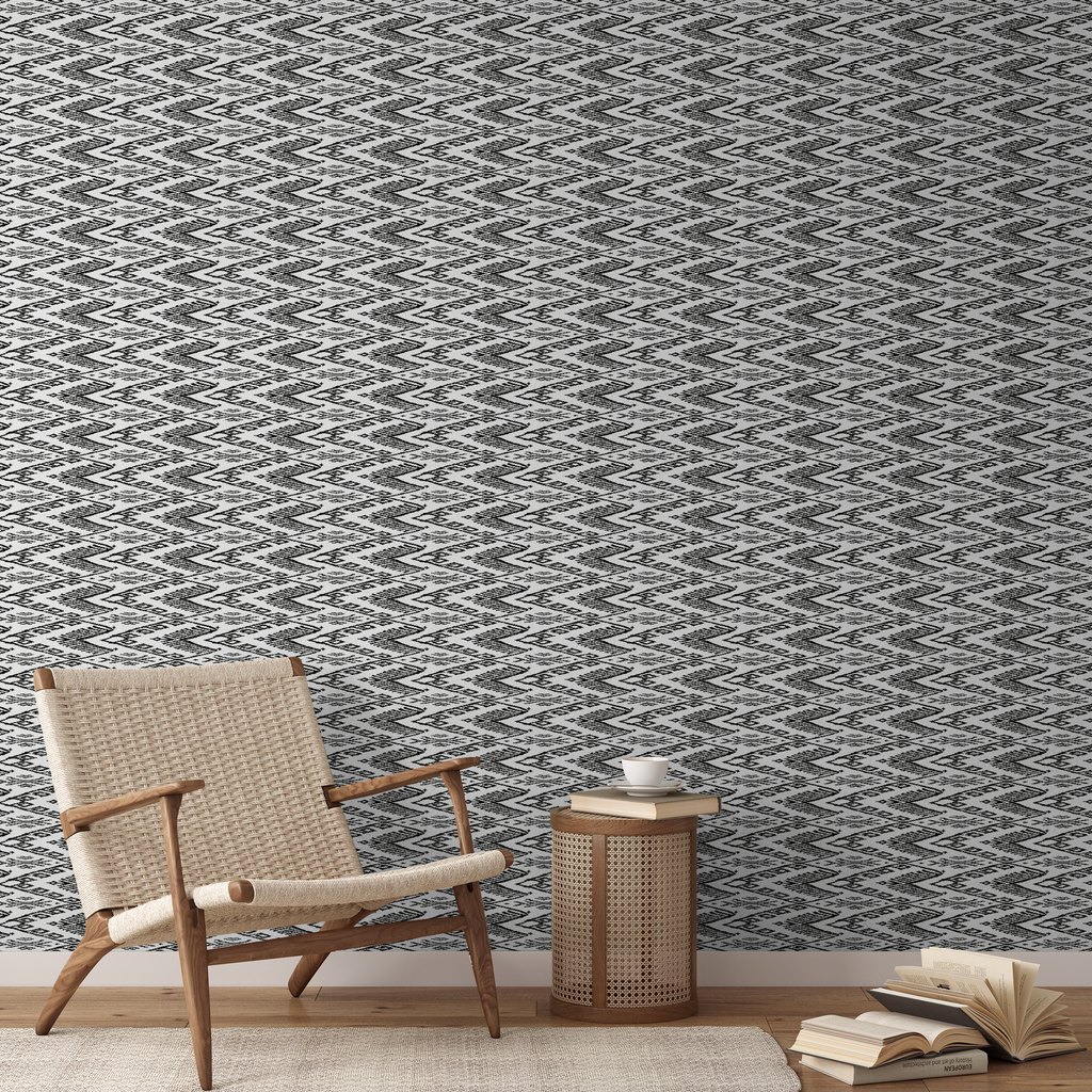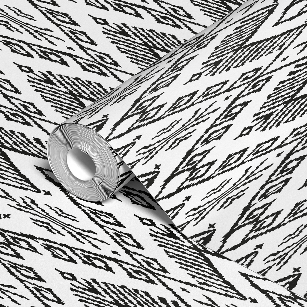 Traditional geometric pattern featuring bold black and white tribal-inspired motifs with diamond shapes, stripes, and angular elements - perfect for bohemian home decor with a global, ethnic aesthetic.